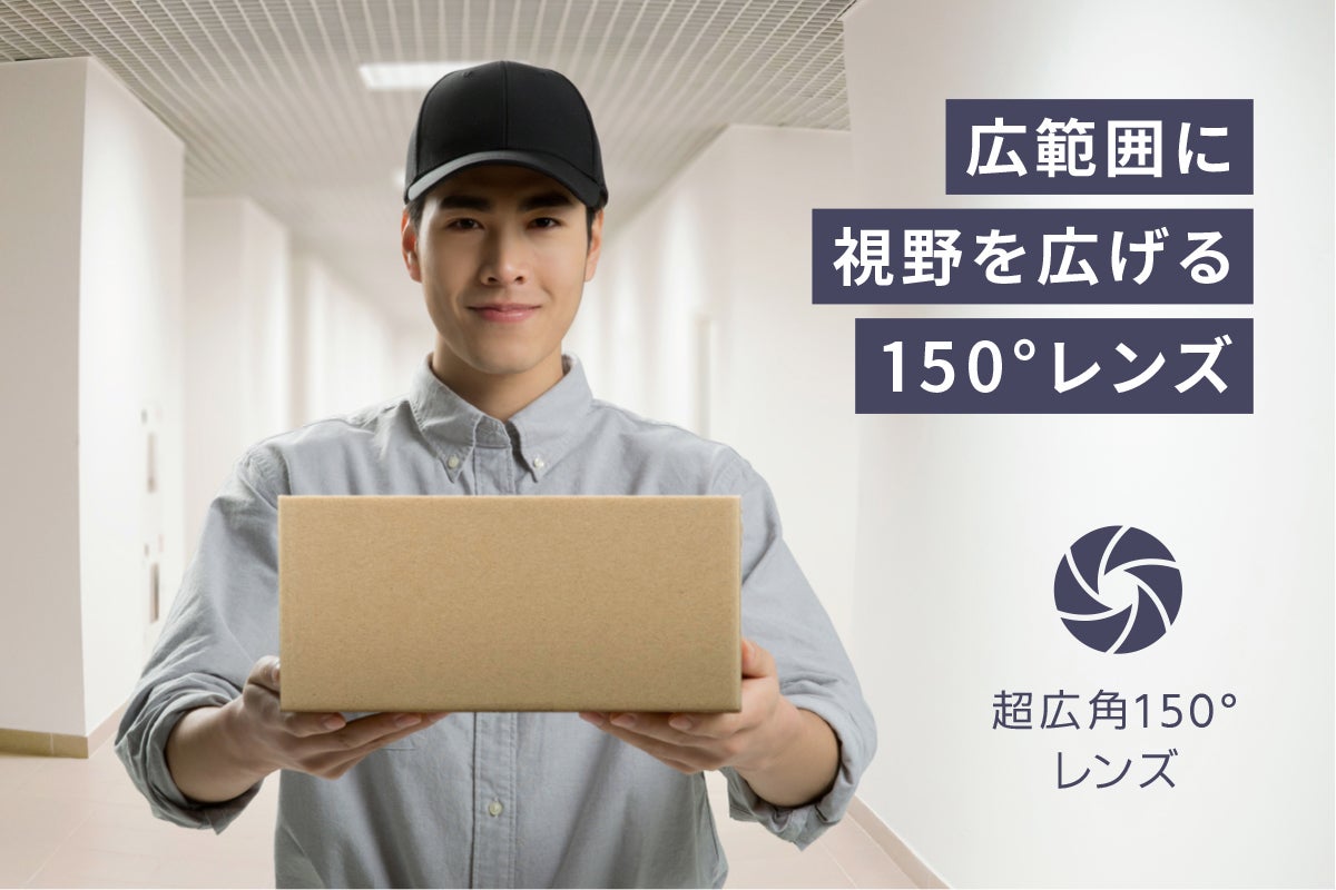 150度の広範囲を見ることができる広角レンズをドアホンに搭載しているので