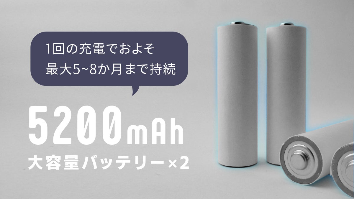 21700リチウムバッテリーが2本内蔵されているので最大5~8か月稼働可能です。