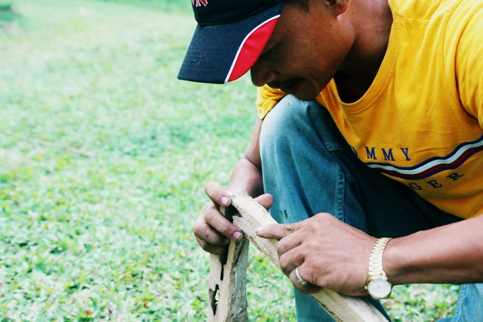 釘がなければ、そのあたりの枝を削って釘を作る。