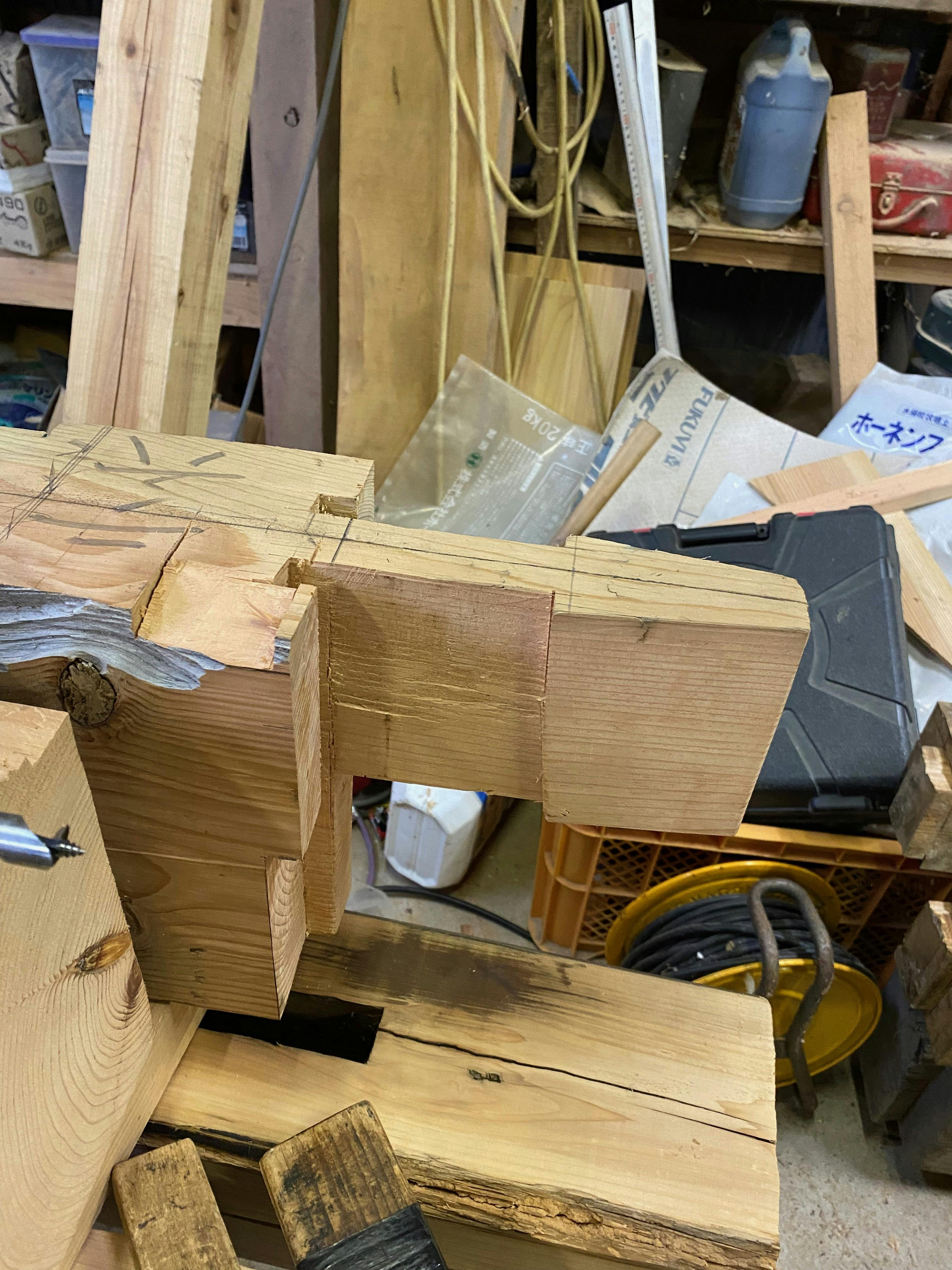小屋建築に使う材料の切込を大工さんにお願いしました。