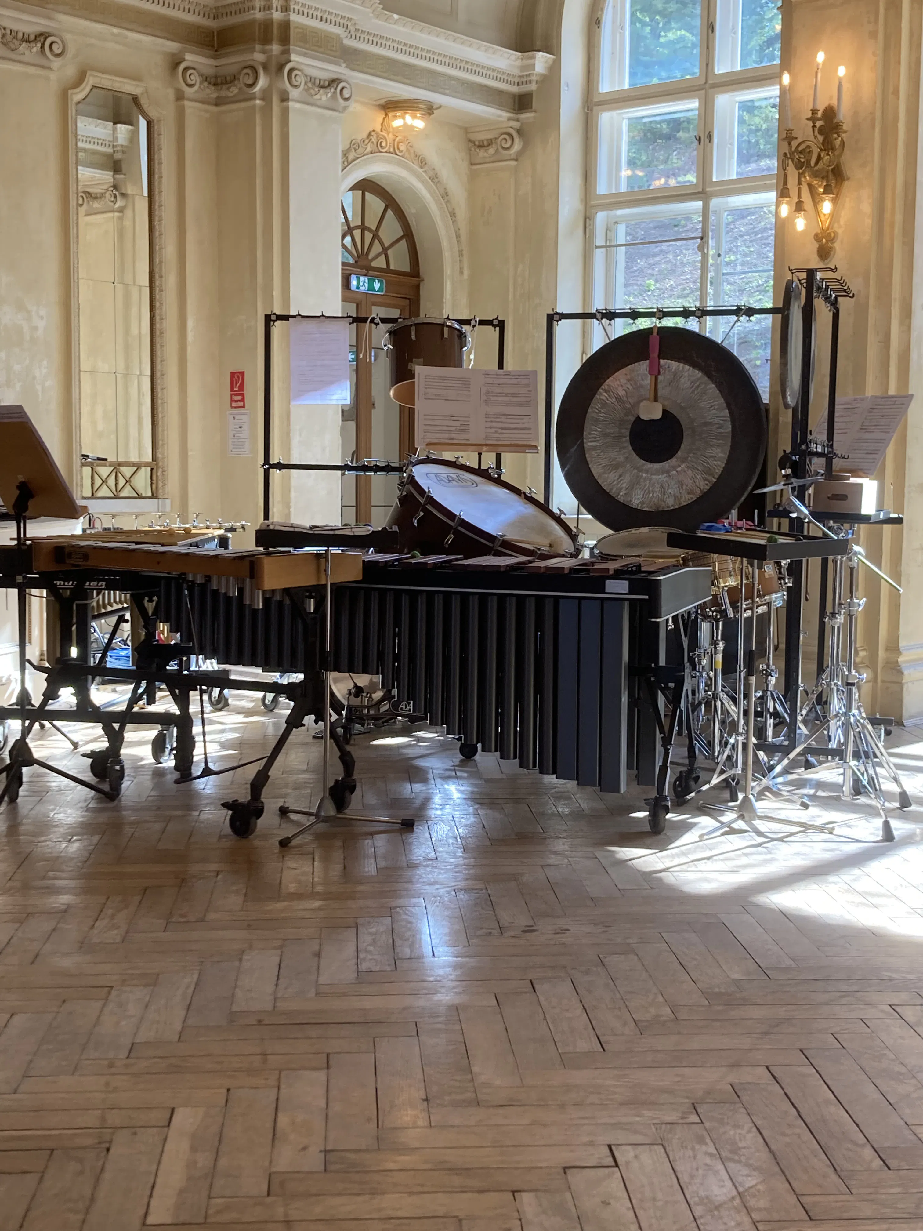 写真は同コンサートで演奏されたハインツ・ホリガーのイカツい打楽器群です。笑
