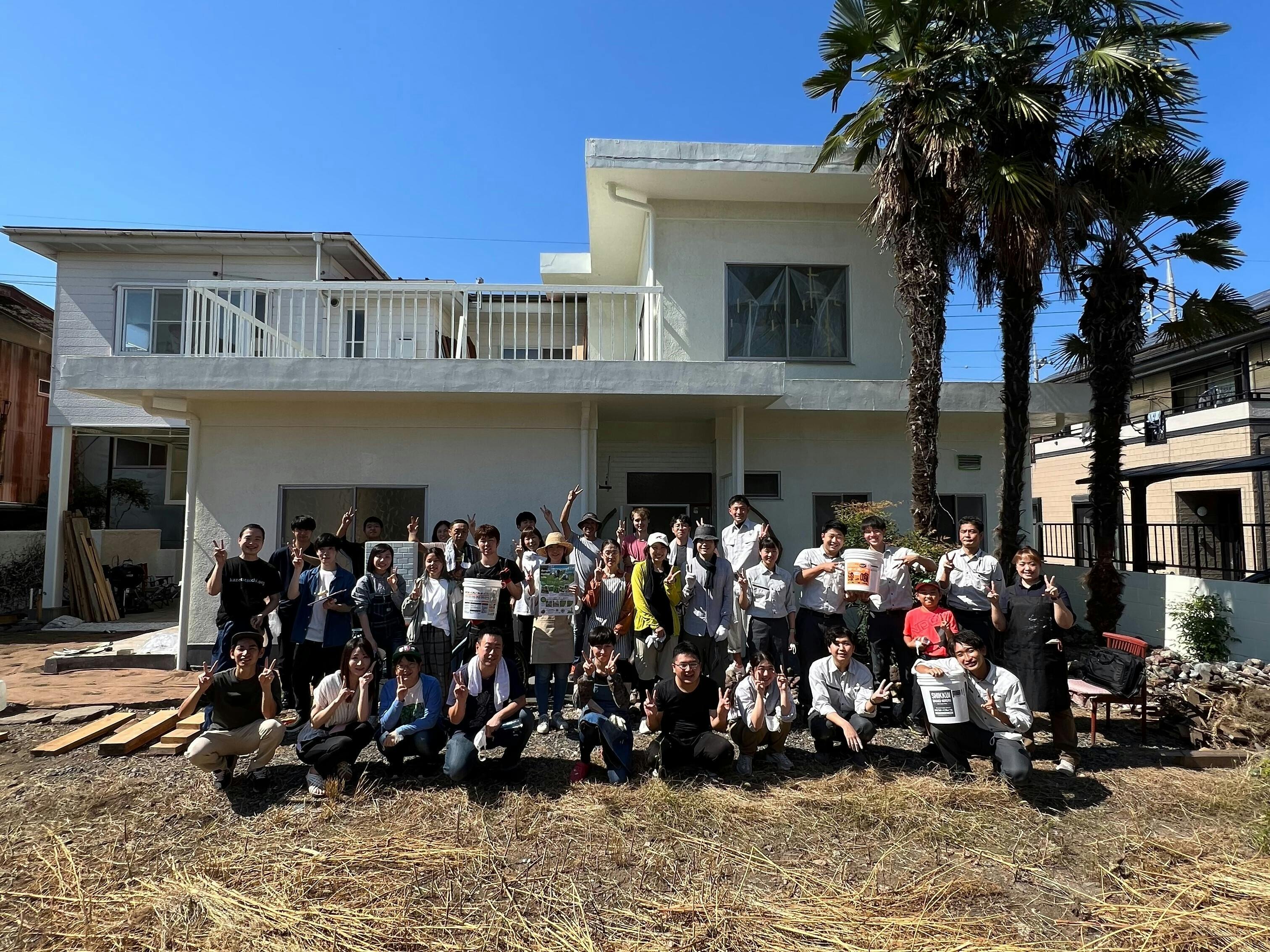 2022/10/11 11:1810月2日(日)にリノベーションを行っている空き家で塗り壁の専業メーカーである日本プラスター株式会社さんと、グランドカバー植物「クラピア」の生産・販売を手掛ける株式会社グリーンプロデュースさんのご支援の下、植樹体験・漆喰塗り体験のワークショップを行いました。参加者はほとんどの方が初めての作業ではありましたが、それぞれの社員の方の丁寧な説明のお陰で笑顔があふれるワークショップとなりました。今回、日本プラスターさんは漆喰の良さや、漆喰を身近に感じてもらいたいという想いから、グリーンプロデュースさんは手入れが簡単で環境にも配慮したクラピアを子どもたちと一緒に体験することで「植育」にしていきたいという想いからご支援頂きました。今回のワークショップのようにそれぞれの想いが交流する空間をこれからも創っていきたいと思います。 もっと見る