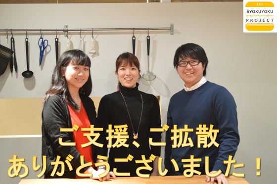 2018/04/01 19:063/30 23:59をもちまして、SYOKUYOKU PROJECTのクラウドファンディングは終了いたしました。ご支援、ご拡散いただいた皆様誠にありがとうございます。 達成率26%となり、目標金額に達成することができませんでした。応援していただいた皆様、ご期待に答えれず誠に申し訳ございません。 ですが、私たちはALL-inにしている通り、食と防災の活動を続けて行きます。 皆様からいただいたご支援は「食で防災を身近に、そして、もっと大切なものにする。」このVisionに向けたスタートダッシュに大事に使わせて頂きます。リターンは、予定時期を目安に必ず送らせて頂きます。 改めまして、ご支援、ご拡散誠にありがとうございました。皆様と共に食の可能性を信じ、食で防災を伝える仲間として、一緒に活動させて頂ければと思います。 引き続き、ご支援、ご鞭撻、心よりお願い申し上げます。 SYOKUYOKU PROJECT 共同代表 小倉優香 弘田光聖 もっと見る本日、最終日!最後まで応援よろしくお願いします!