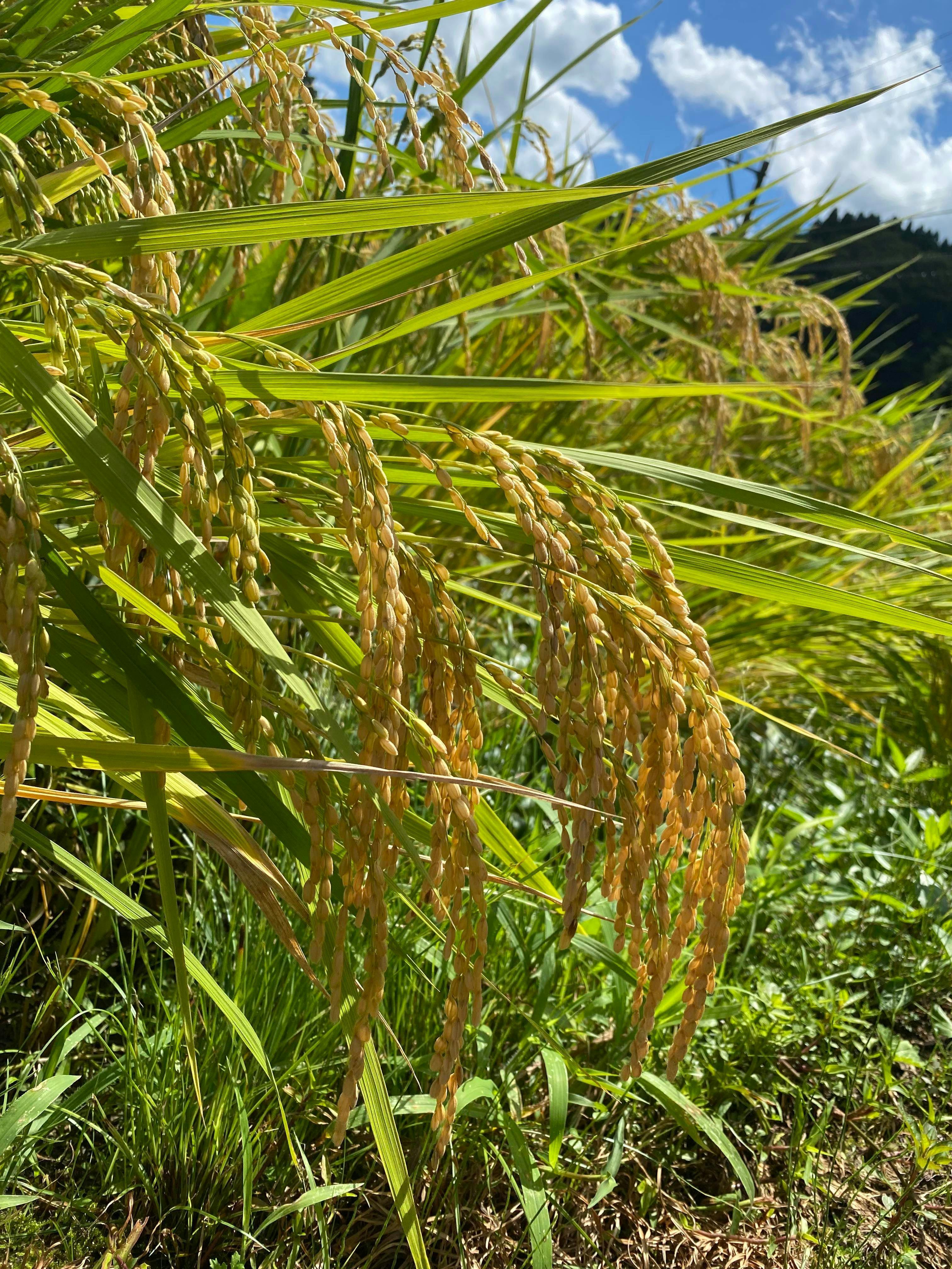 黄化し、熟してまいりました!まだ青みがかった籾も見られるので、推定であと1週間後くらいに稲刈りスタートかなと思っています。お楽しみに!