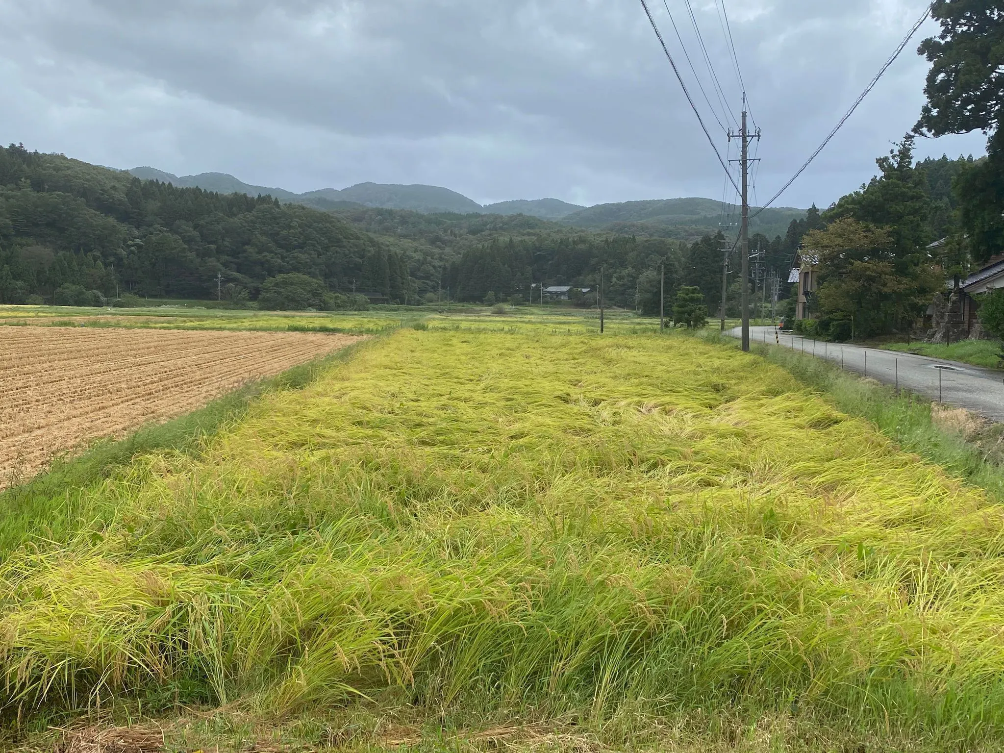 今回そんな起き上がった田んぼは見受けられず、稲穂は守られている状態です。