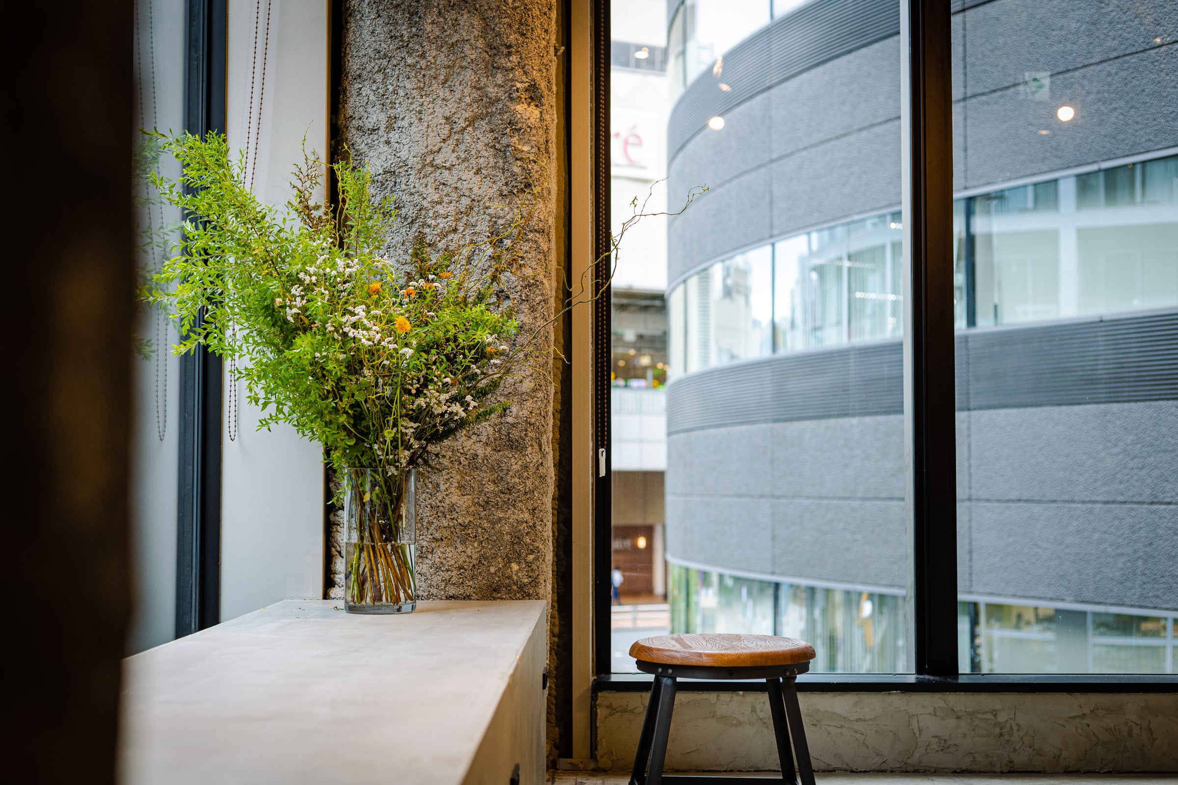 エレベーターにのり、4階でおりて店へ入ると、真っ先に目に飛び込むのは壁2面につくられた大きな窓。