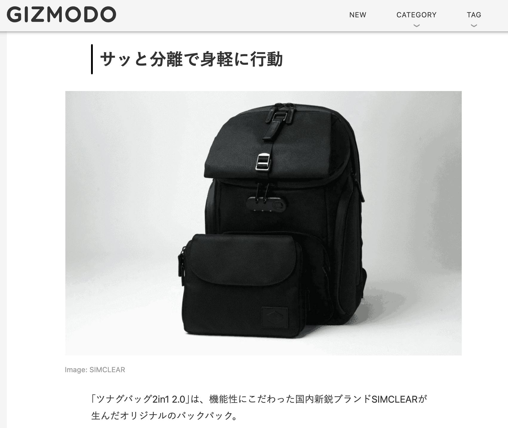 今回プロジェクトの ツナグバッグ 2in1 - 2.0が人気ウェブメディアのGIZMODOに