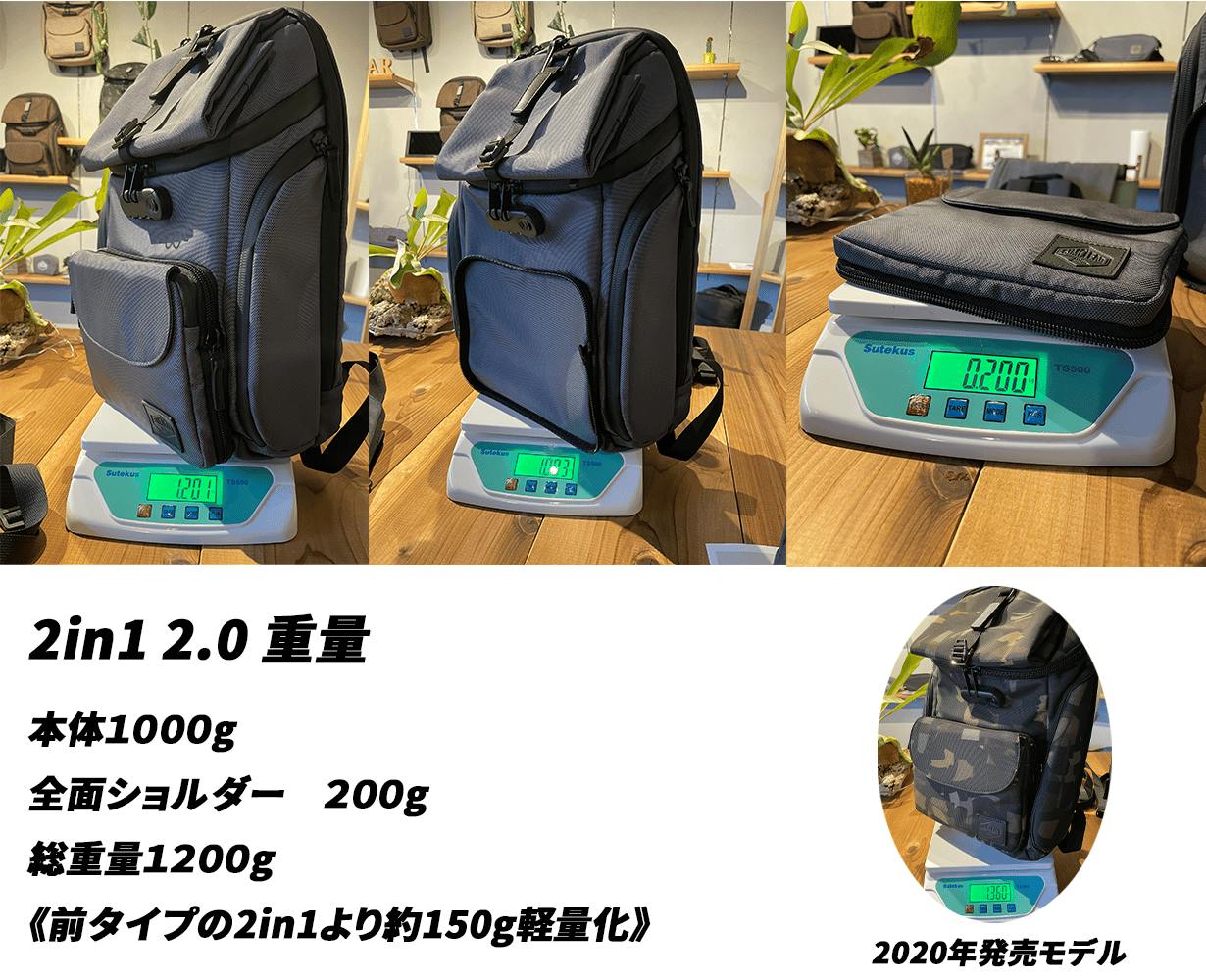 一般的に耐久性の高い1680Dを使ったメーカーのカバンは2kgから3kg前後のものが多いですが、パーツや特注生地に変更したことにより軽量化が実現できております。