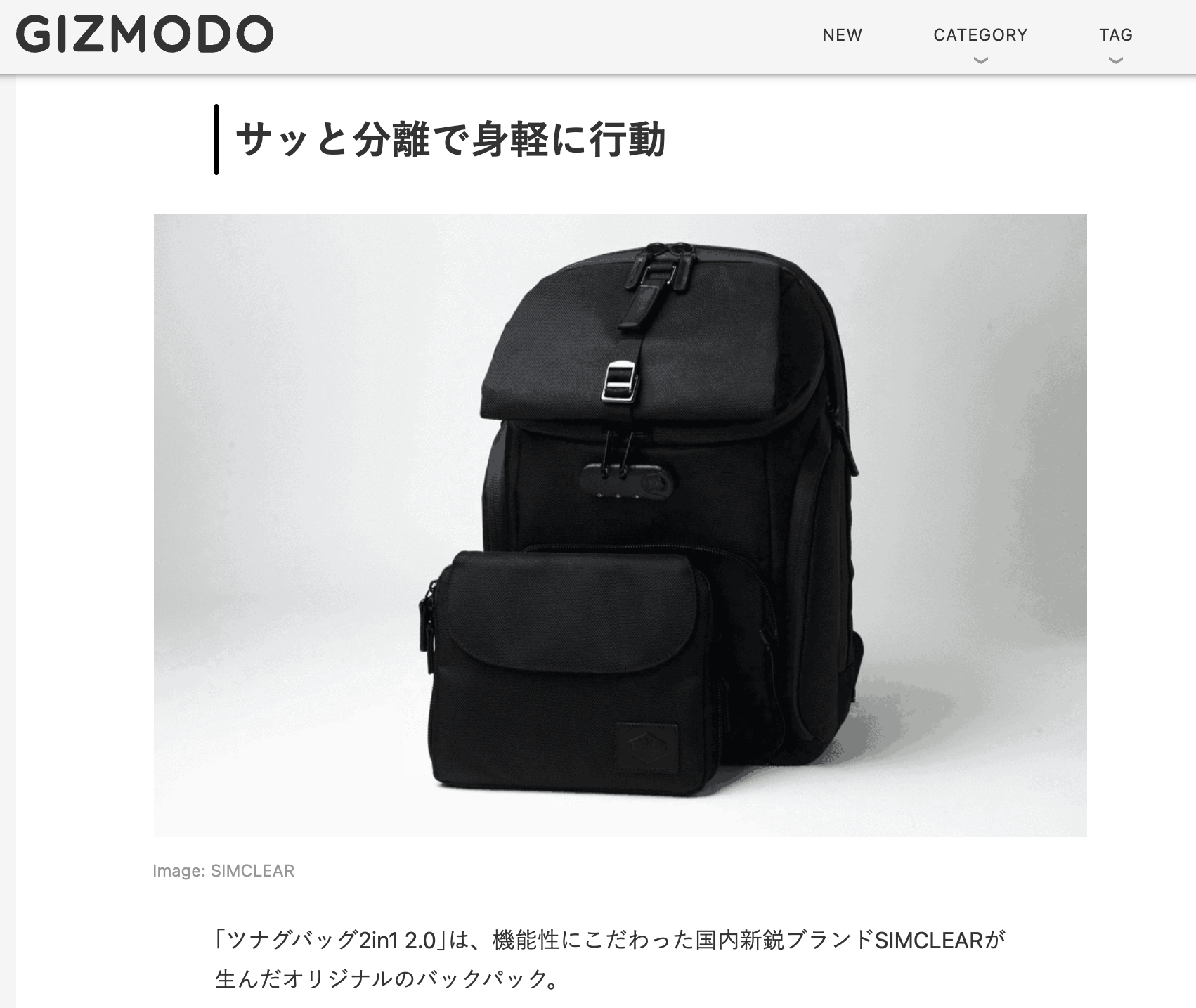 活動報告ご覧いただきまして有難うございます。シムクリア石川です。今回プロジェクトの ツナグバッグ 2in1 - 2.0が人気ウェブメディアのGIZMODOに掲載されました。記者の方からの分かりやすいレビューとなっております!!是非チェックしてみてください。GIZMODOページはこちら↓https://www.gizmodo.jp/2022/07/machi-ya-tsunagu-bag-start.html
