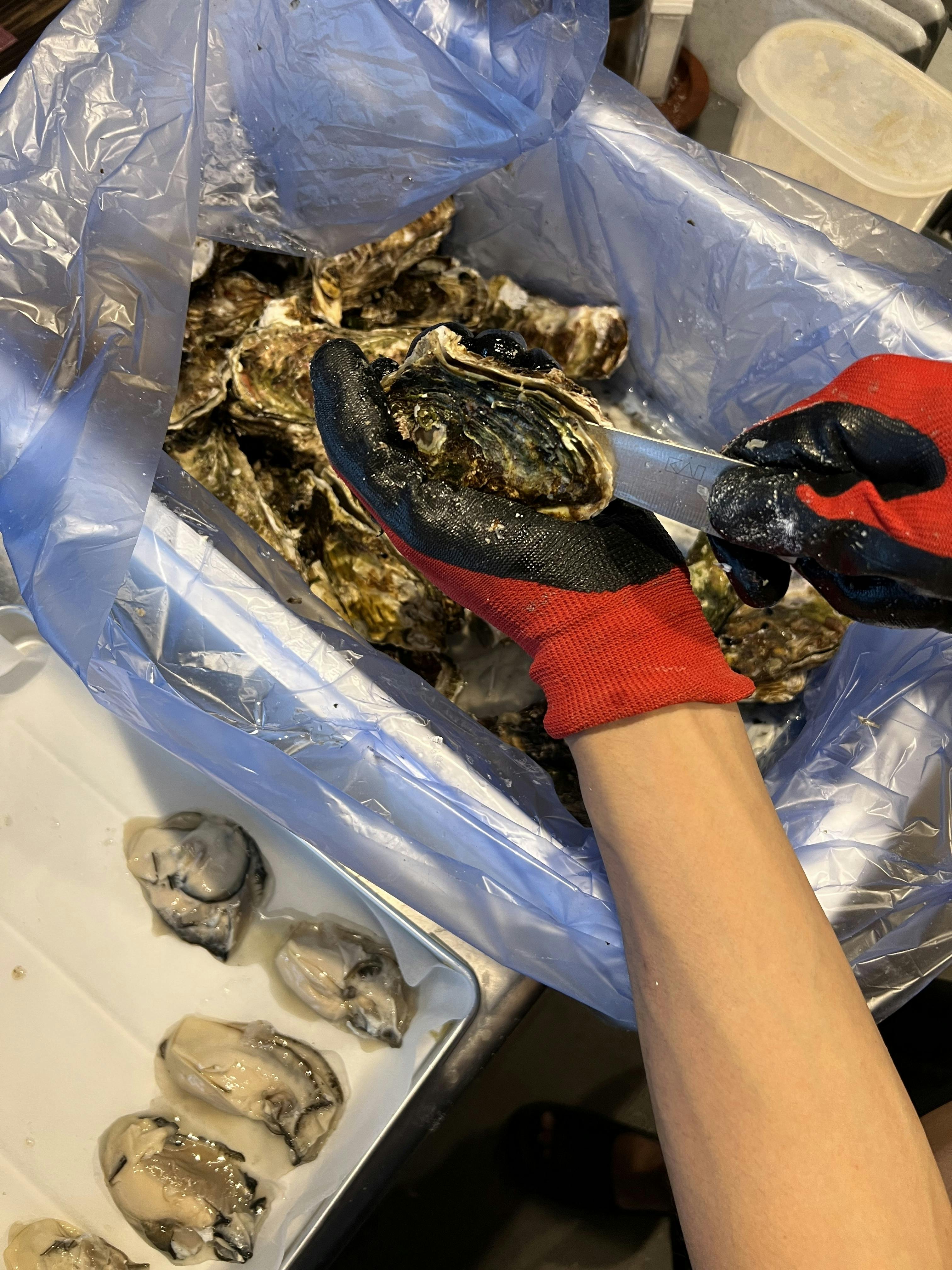 そのための新鮮な牡蠣が今日宮城から届いたので早速大量の牡蠣を剥いて仕込みをしております^_^