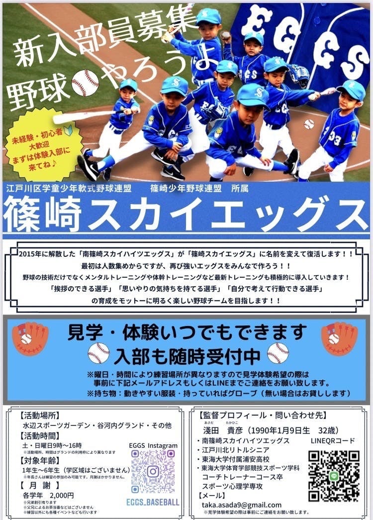 1人でも多くの方々が篠崎スカイエッグスの事を知っていただけると嬉しく思います。