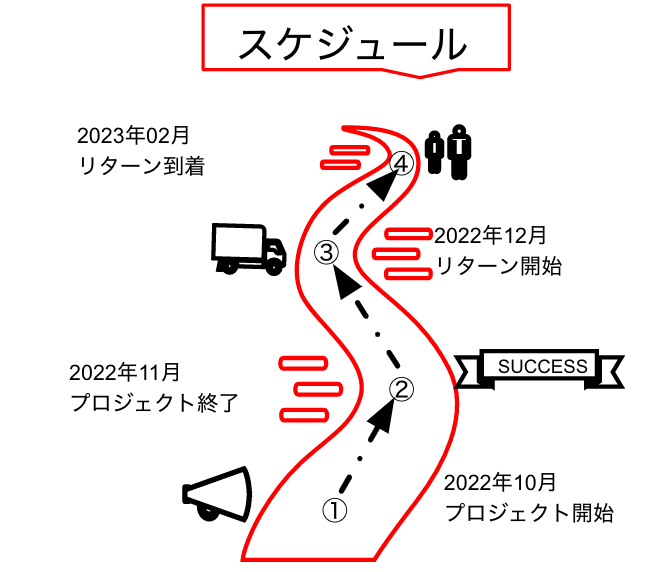 ※本文中に記載させていただいたスケジュールは、あくまでプロジェクト公開時点の予定です。支援の性質上、配送遅延のおそれがございます。