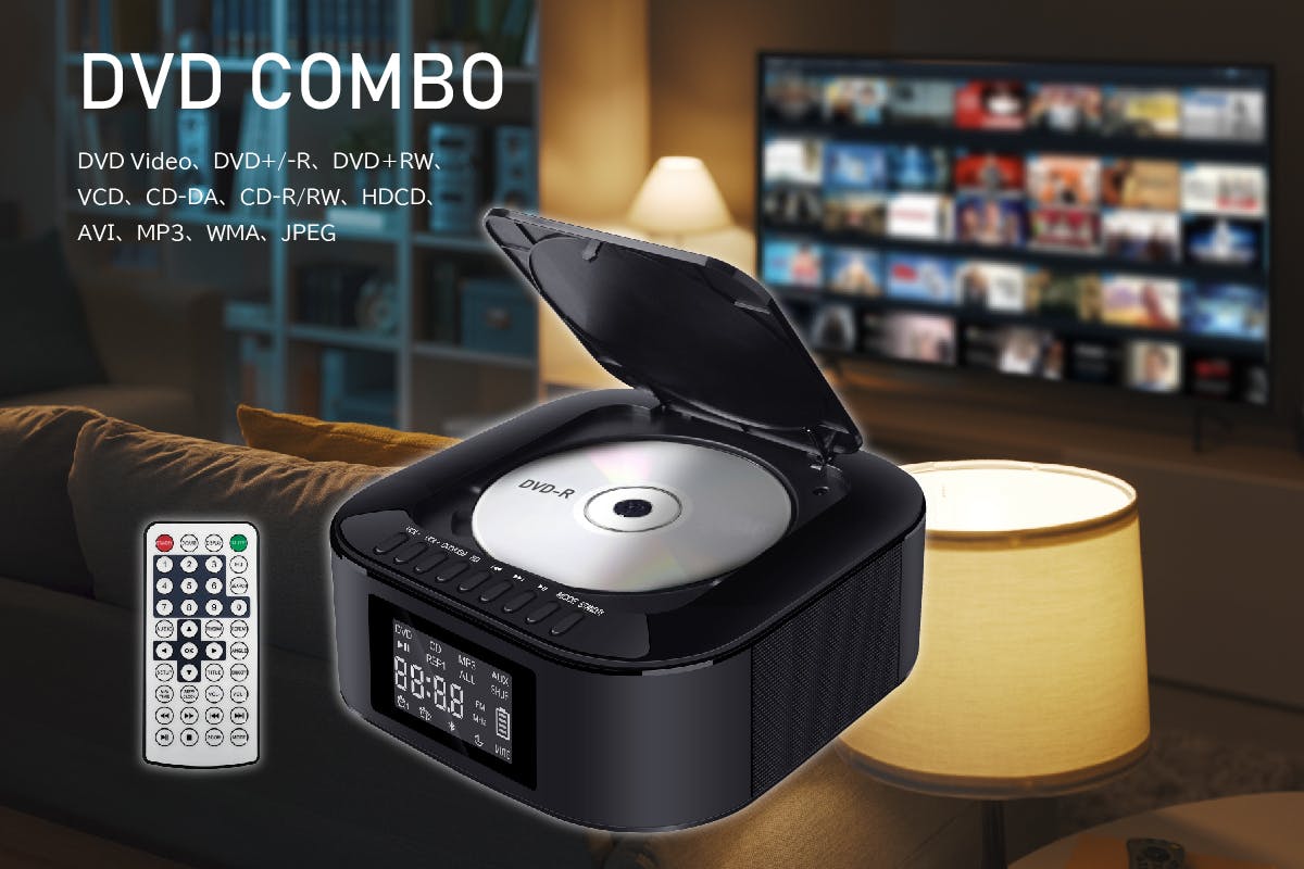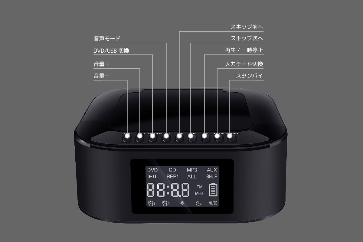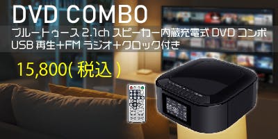 ブルートゥース 2.1chスピーカー内蔵 充電式 DVDコンボ(USB再生+FMラジオ+クロック 付き)が誕生!!