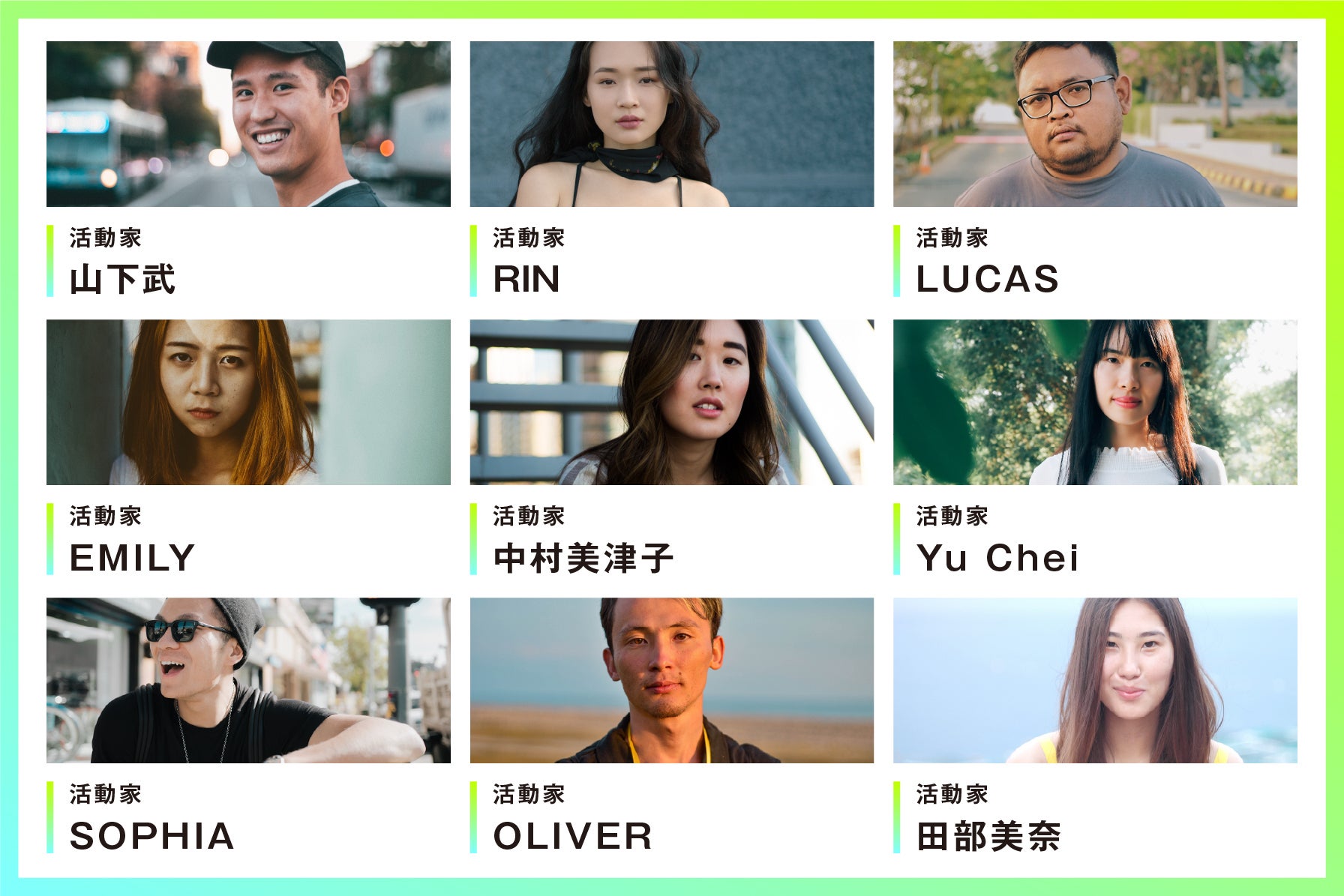私たちの世界観に共感していただくことのできる、日本の各地で環境保全に取り組む活動家のみなさまにご参加いただきます。