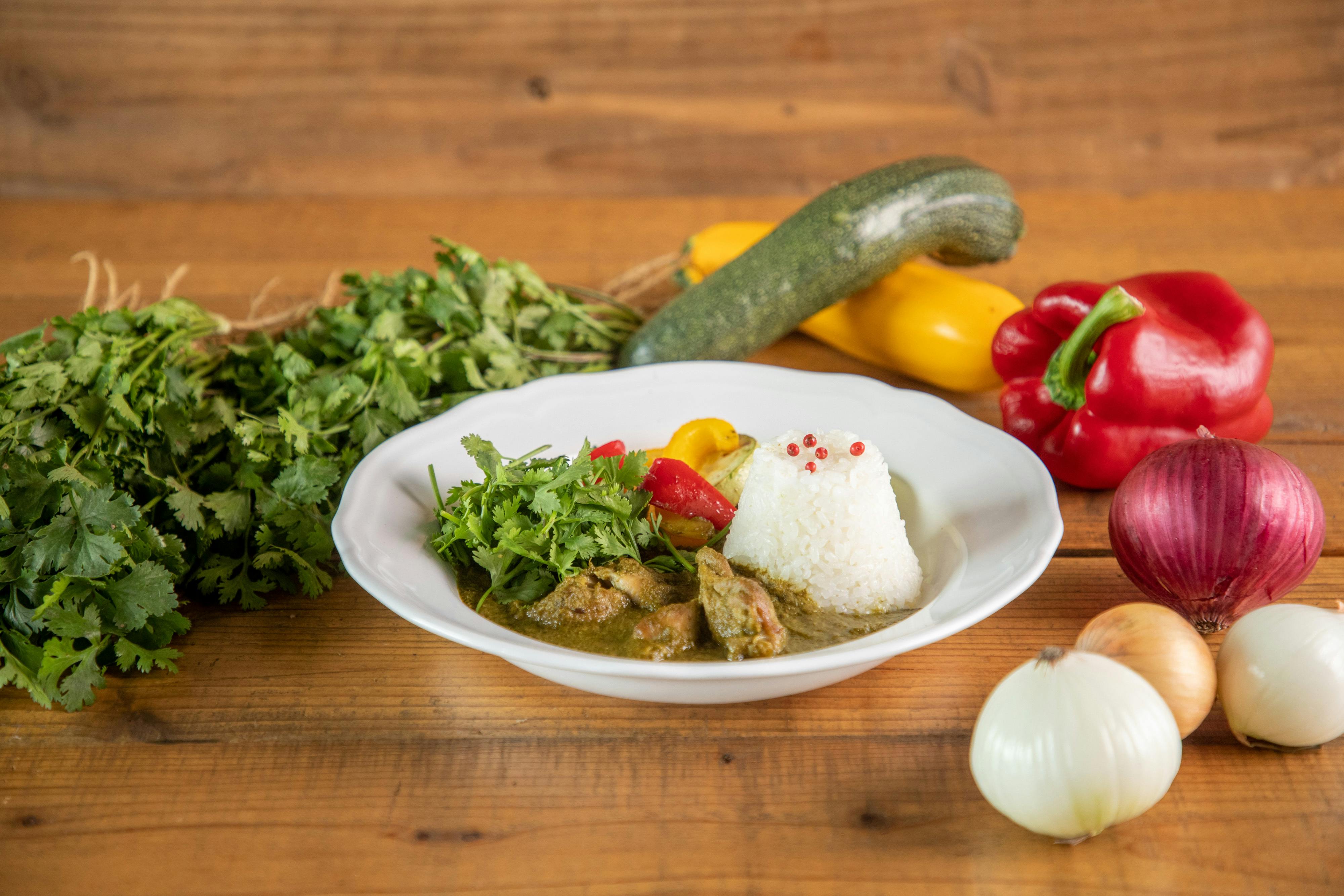 そのような活動の中で少しずつ規格外品の廃棄などは減ってきましたが、まだまだ限定的な活動となっています。そこで、今回は、より多くの方へのアプローチとして、多くの人に馴染みのあるカレーと餃子にパクチーを組み合わせ「パクチーカレー」と「パクチー餃子」の開発を行いました。