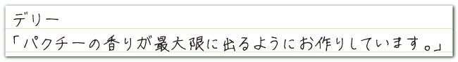 他の野菜と比較するとクセが強いパクチーなので、苦手な方も一定層いらっしゃるとは思いますが、品質が高い美味しいパクチーは、味・香りともに格別です。