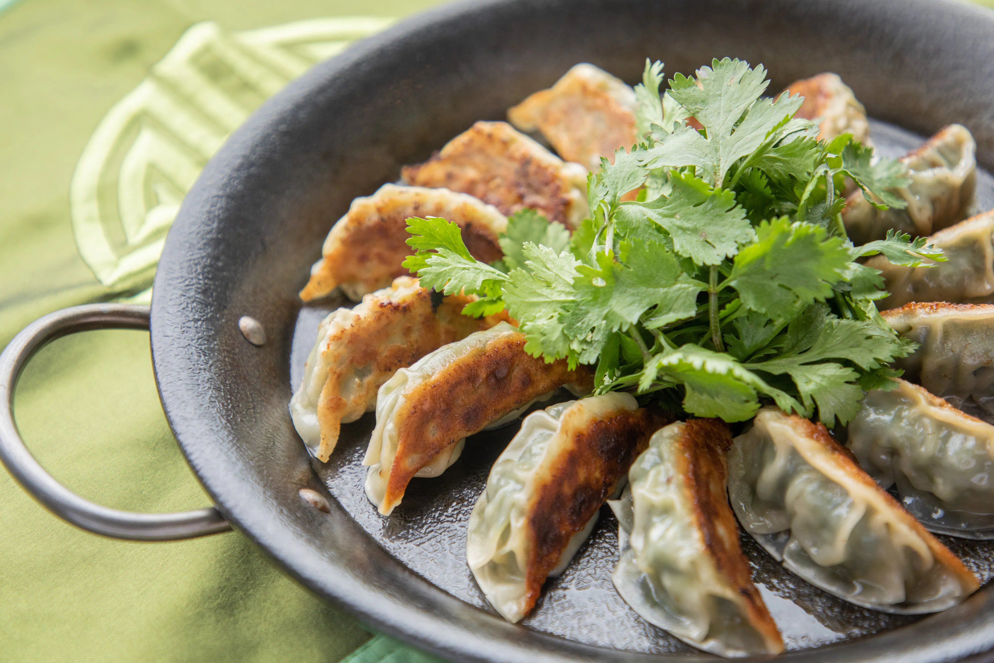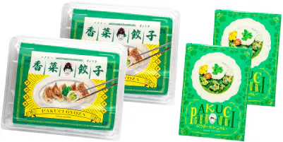 「パクチー餃子」は、国産の食材にこだわって、タレをつけずに食べられる餃子を販売している「餃侍」さんにご協力いただきました。パクチーの良さをしっかりと味わってもらえないかと考えていたところ、食材の良さを活かして餃子を作っている「餃侍」さんに出会い、商品化に協力いただきました。試行錯誤を何度も繰り返し、素材本来の良さを引き出した餃子が完成しました。