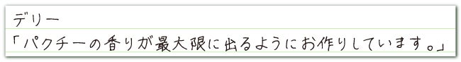 今回の商品化には、パクチーの良さを様々な形で伝えていきたいとの想いに加えて、生産者として「愛情を育てたパクチーは無駄にせず美味しく食べて欲しい」という想いもあります。