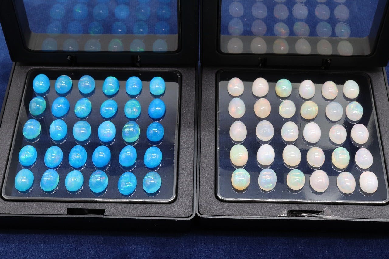天然オパールそのもののカラーを活かした「White Color」、母材の天然オパールにスモークで色を染み込ませる処理を施した「Blue Color」の2色をご用意させていただきました。