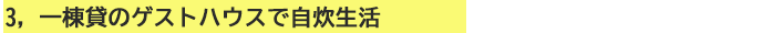 ここで共同生活を楽しみならが、料理や洗濯も自分たちで行ってください。