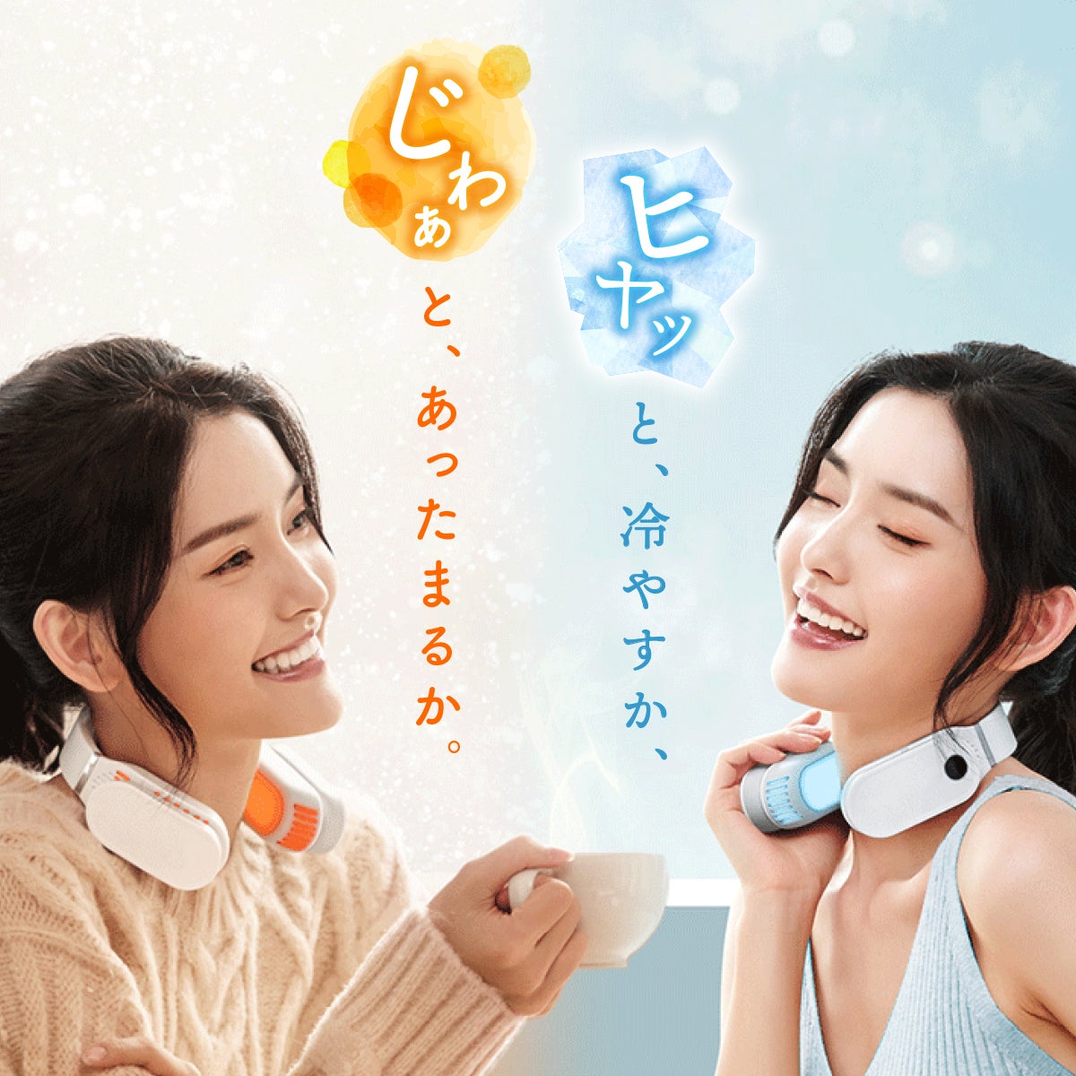一昔前は夏にクーラー、冬はヒーターと使い分けされていたのが 大手メーカーの努力によりエアコンが開発されて年中対応できるようになりました。 今人気の首掛け扇風機やネッククーラーも、年中対応できるよう進化させるべきとの思いから、 メーカーと開発することとなりました。