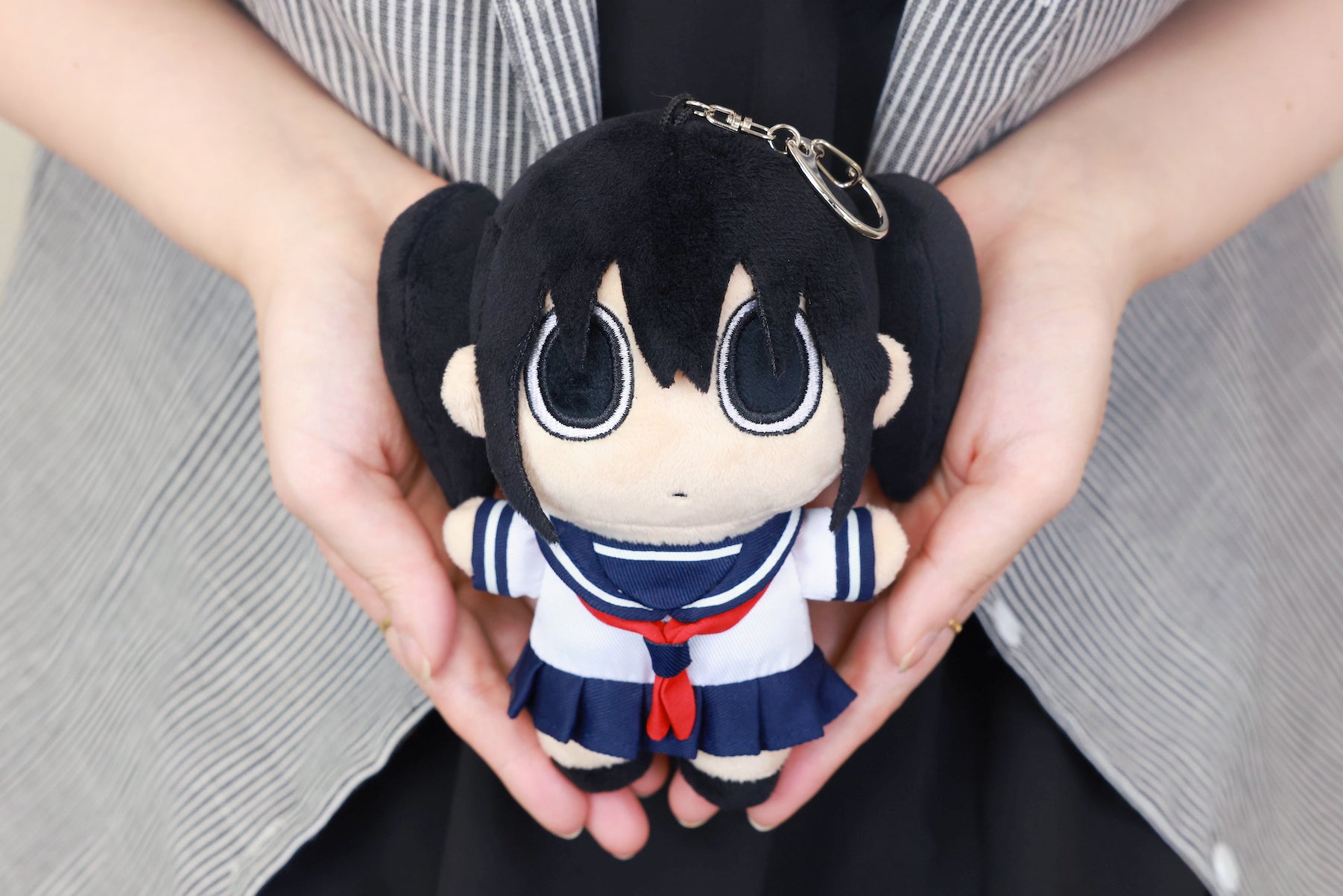 黒髪ツインテールとセーラー服、大きな虚無目がチャームポイント。