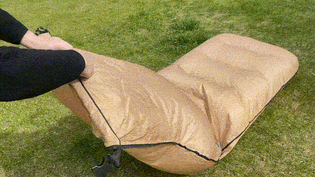 エアーラウンジャーは素材の性質上、柔らかい素材のため、丸めてとてもコンパクトになります。