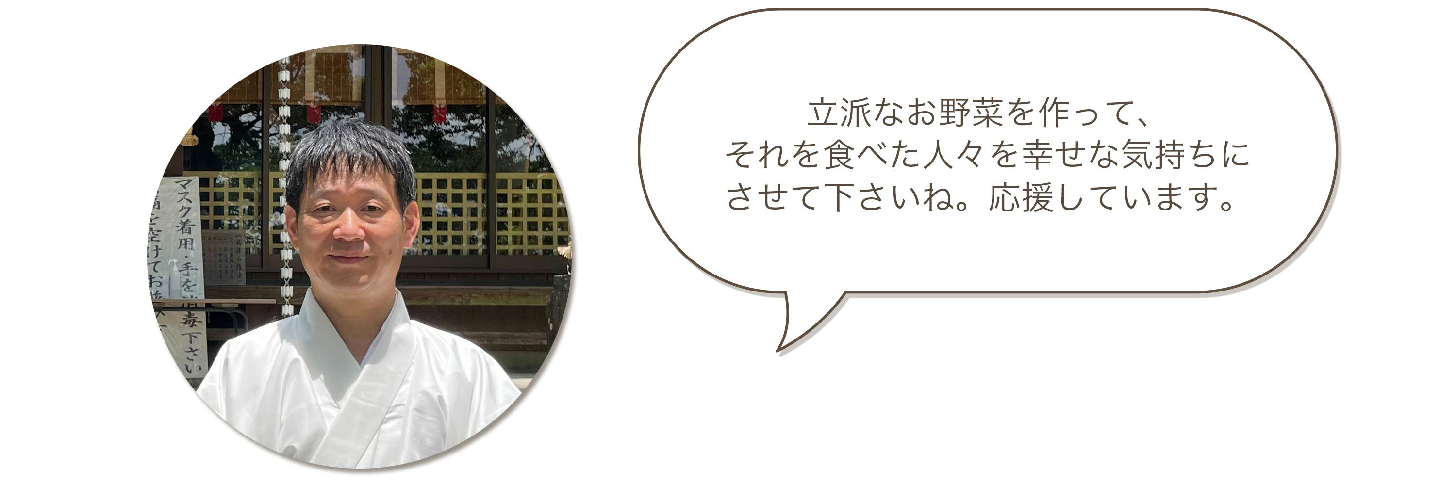 立派なお野菜を作って、それを食べた人々を幸せな気持ちにさせて下さいね。応援しています。