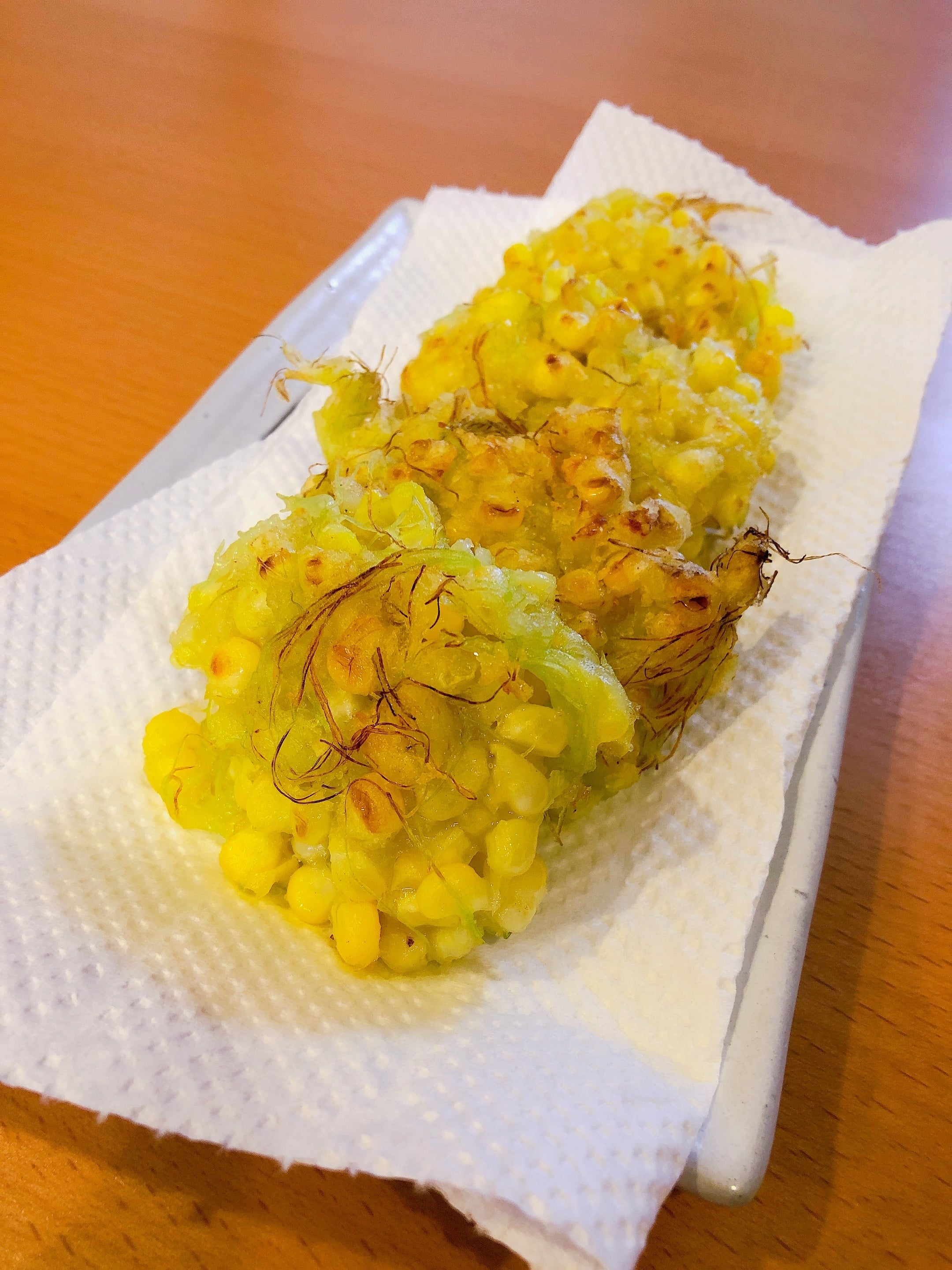 今日の写真は、髙田農園の『桃太郎コーン』を使った、天ぷらです。
