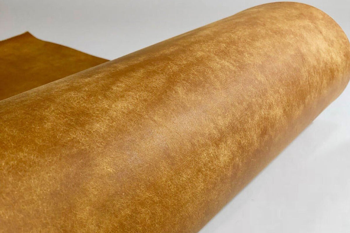 最初の状態は、ザラザラとした和紙のような手触りで、マットな質感なので光沢は殆どありませんが、使い込むほどに表面の繊維が寝て光沢が増していき、深みのある色に変化していきます。