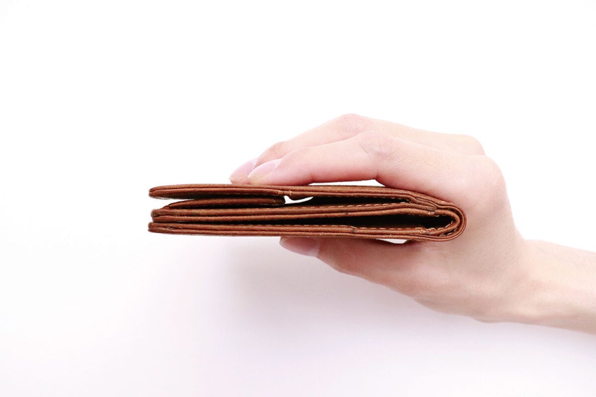 お札・小銭・カードがかさばることなく、きれいに収納できる財布です。