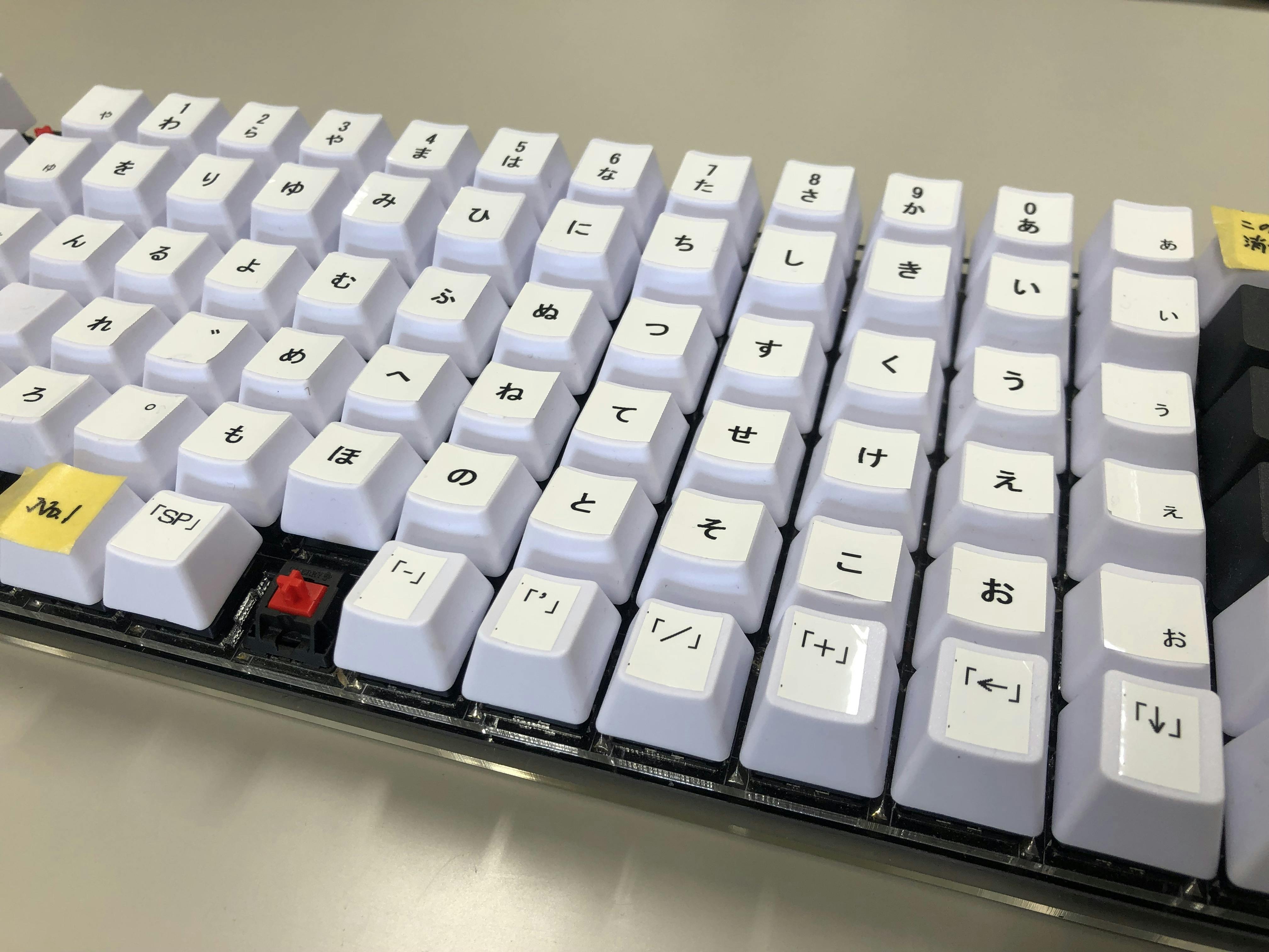 ここで皆さんもおわかりのように,市販のキーボードの平仮名の配列はとてもわかりにくいですね.なので,五十音表のように並んだキーボードも作りました.これはまだまだ改良の余地がありますので,世に出すにはもう少し時間が必要です.