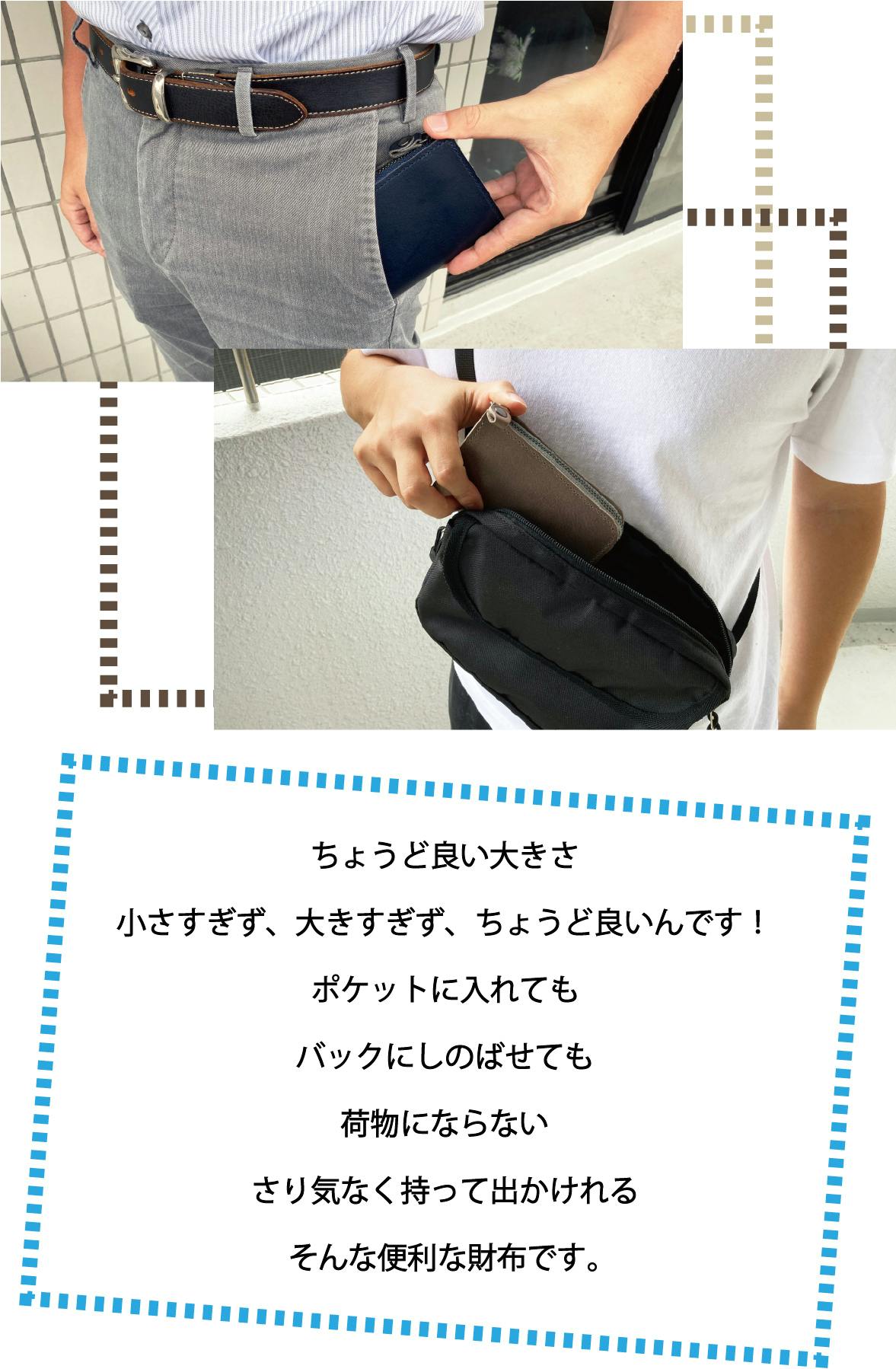 この商品はシンプルで大きすぎず、小さすぎない、ちょうどいいをコンセンプトに作られた財布になります。
