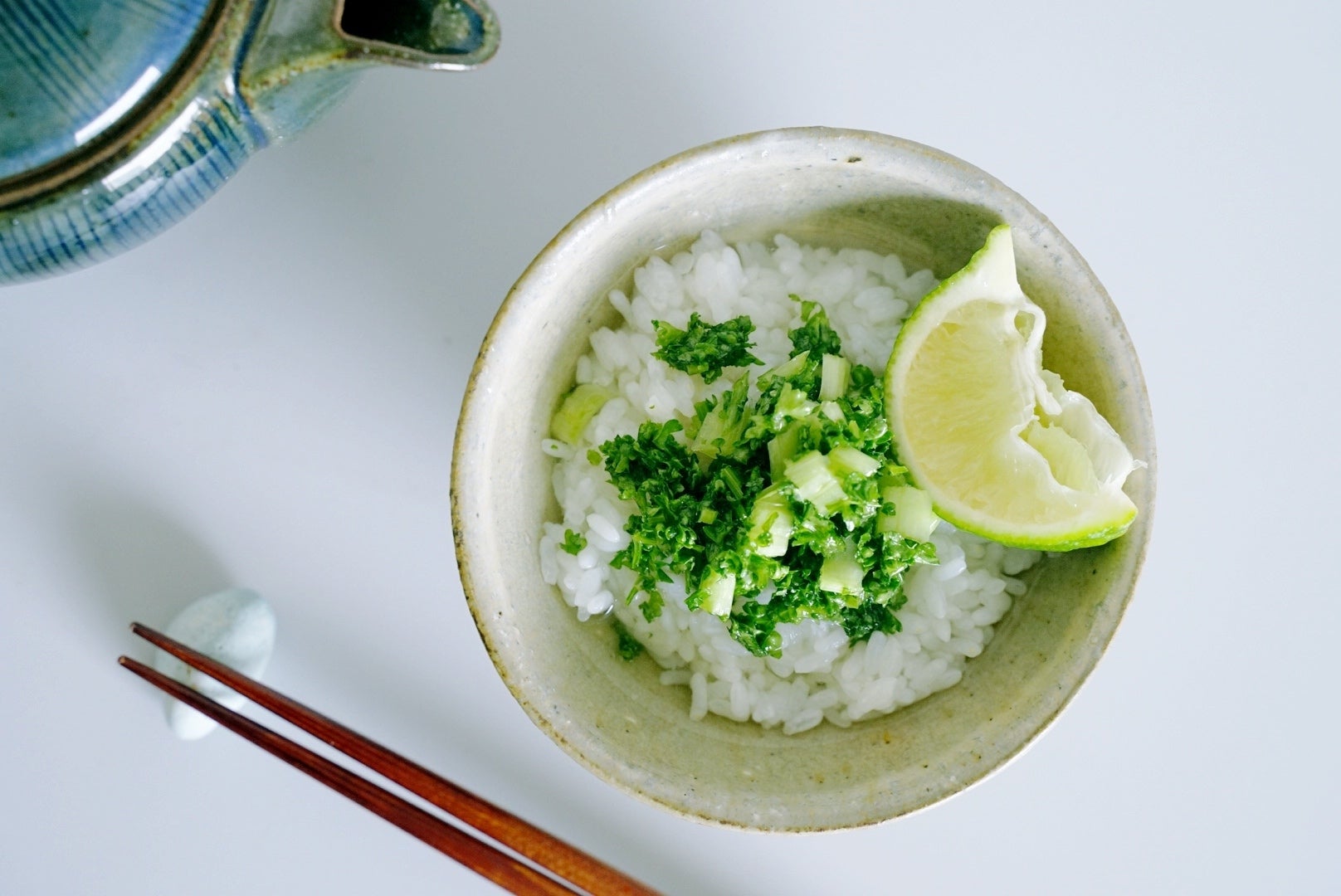 Picklestoneでつけた漬物を白いご飯に乗せ、そしてT-Unitで抽出したコールドブリュー出汁を注げば、「冷やし茶漬け」の完成です。このシンプルな料理は驚くべき体験になると思います。