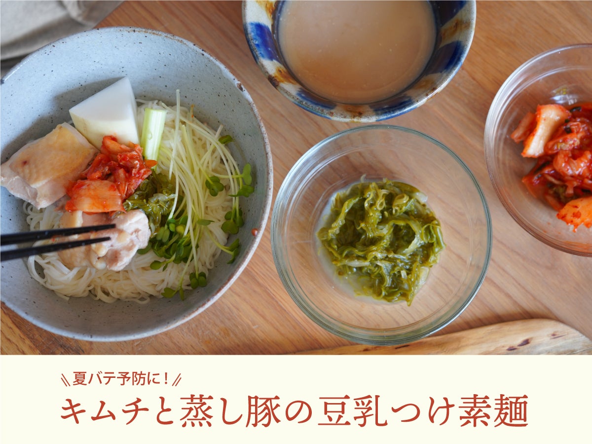 【夏バテ予防に!キムチと蒸し豚の豆乳つけ素麺】