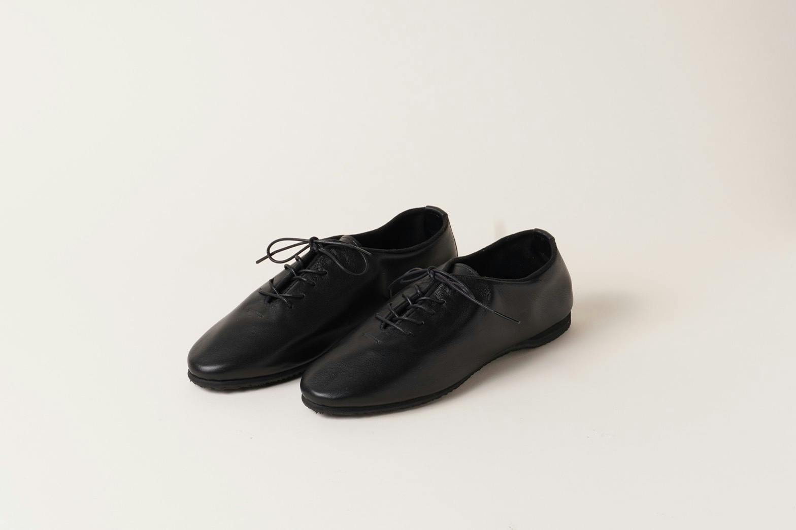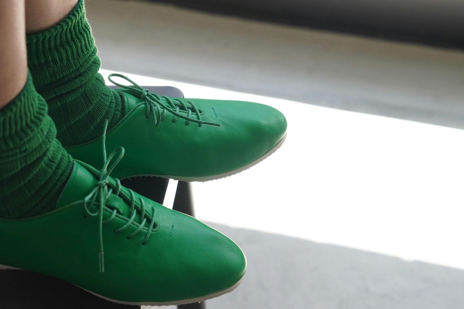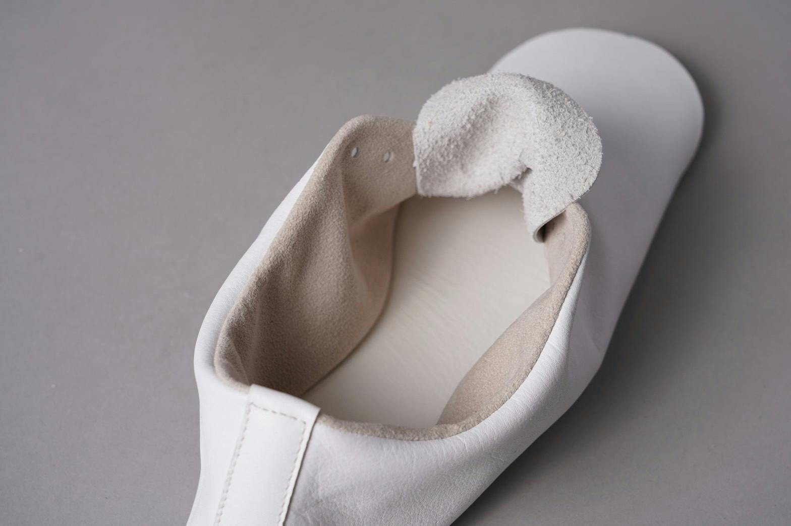 通常靴にはかかととつま先に硬い芯材が入っていますが、この靴はそれらを入れない為、クタっと柔らかく、様々な足の形になじみ包み込まれる優しい履き心地を実現しました。