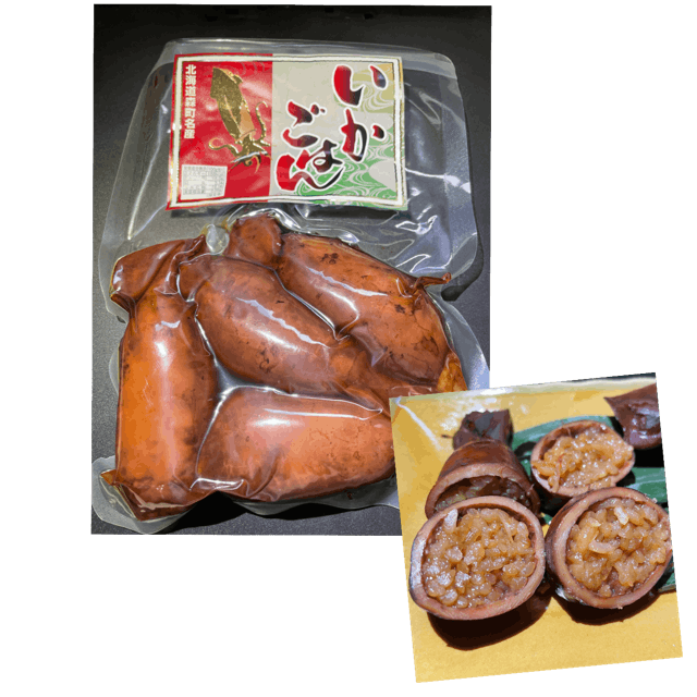 イカの中にご飯を詰め、甘辛いタレで旨味をしっかりと染み込ませ、ふっくらやらかく仕上げました!