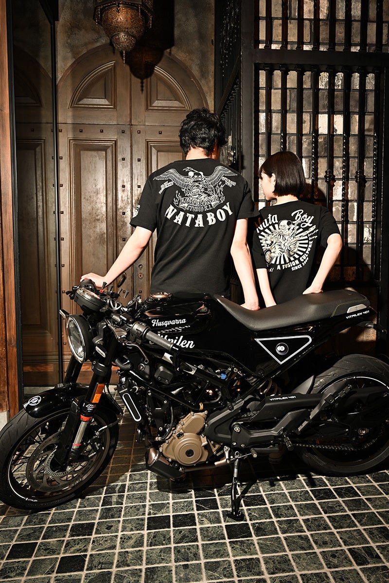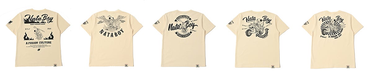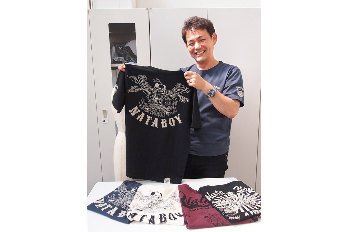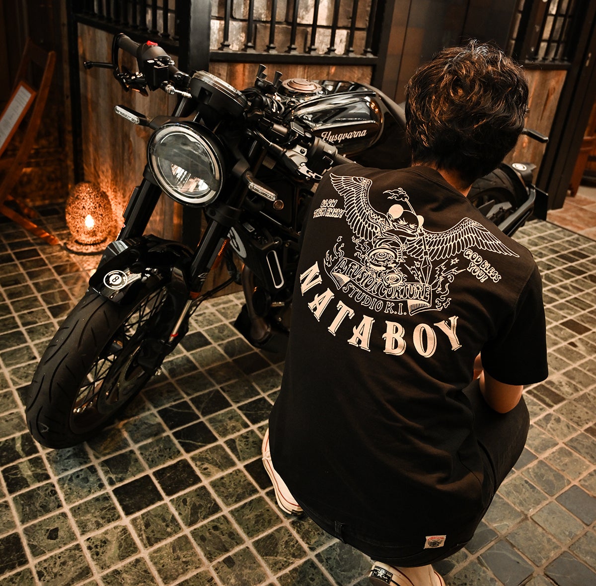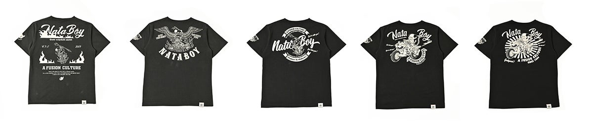 ブランドロゴはnataboyの炎を纏った車輪をモチーフに作成。余談ではありますが、多趣味な私の趣味の一つに鉄道模型もあり、この車輪はドイツの蒸気機関車の車輪をディフォルメしていたりと、趣味人の燃える魂の熱みたいなものを重ねています。