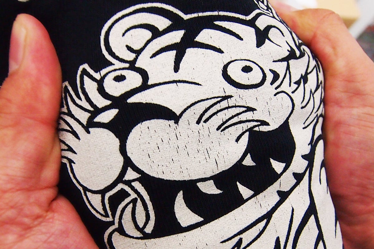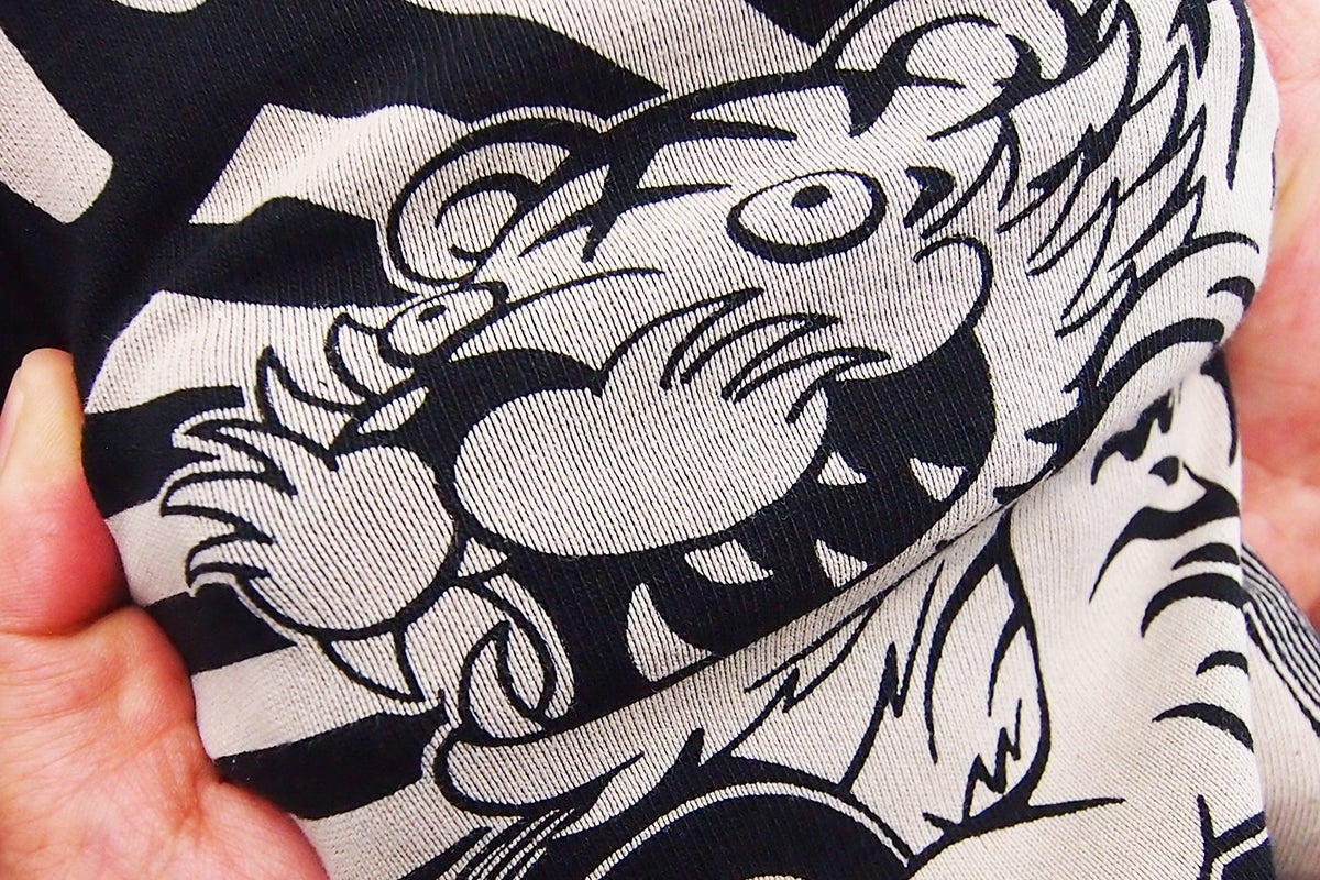 抜染(バッセン)という文字が示すように、生地の色から色を抜いてグラフィックを
