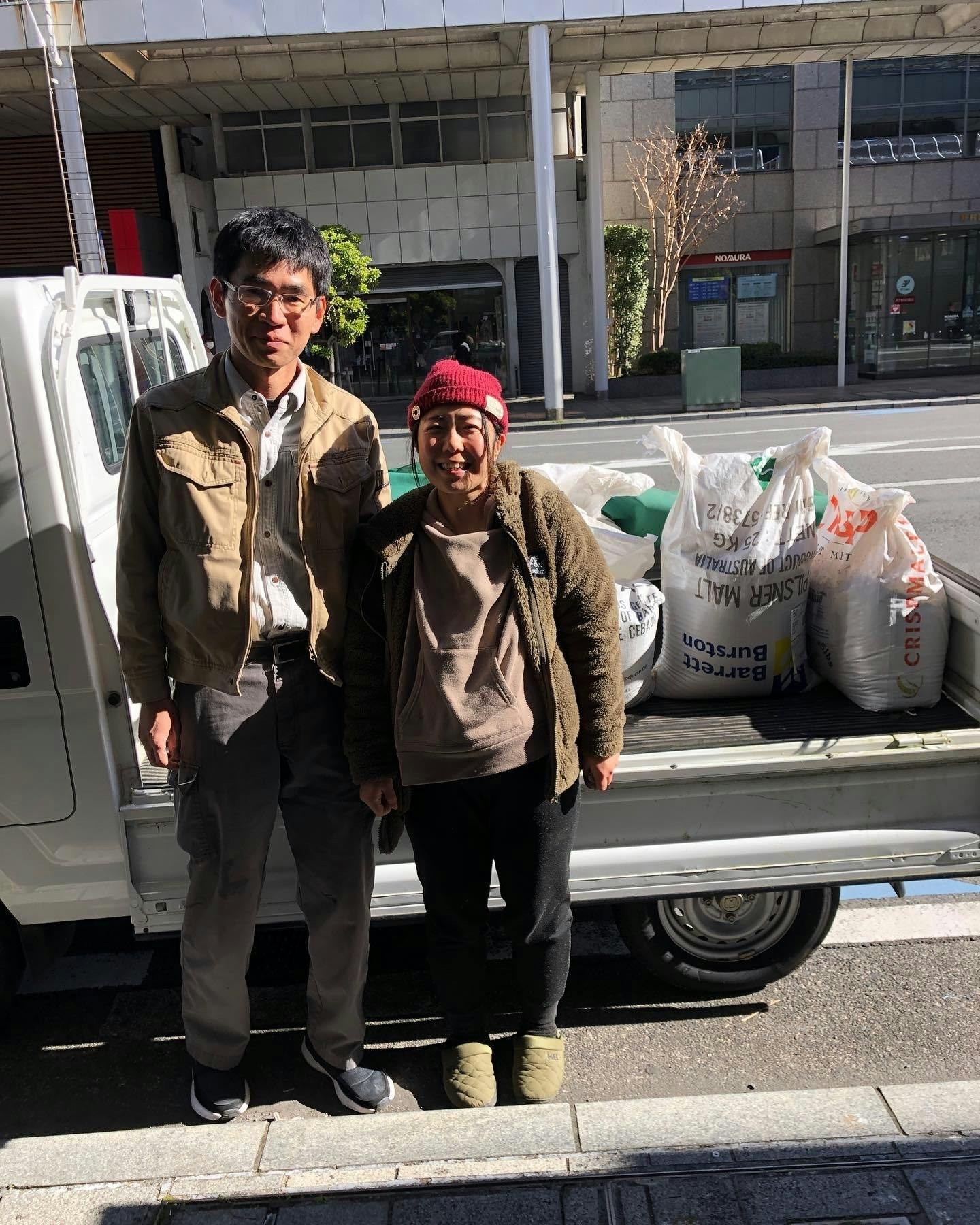 ビール作ってます。作るたびに麦芽カスが出ます。契約してる産廃業者さんが持って行くのですが、なんかもったいないですよねー。取りに来れる方限定で差し上げます。と、言ったら南伊豆の農家夫妻が取りに来てくれました。美味しい野菜造りにお役に立てるならうれいなー。