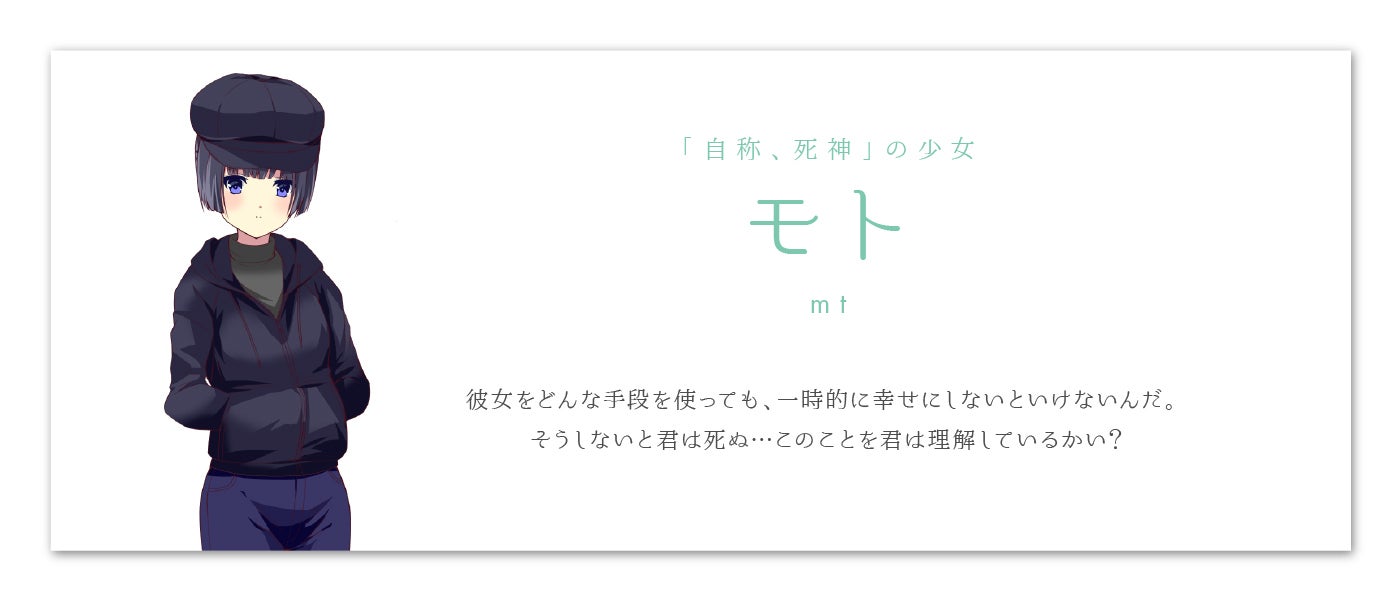 日常に死神という非日常がミックスされた、「生きることと、誰かの幸せを願うこと」の意味を知る青春群像劇ADVゲームになります。