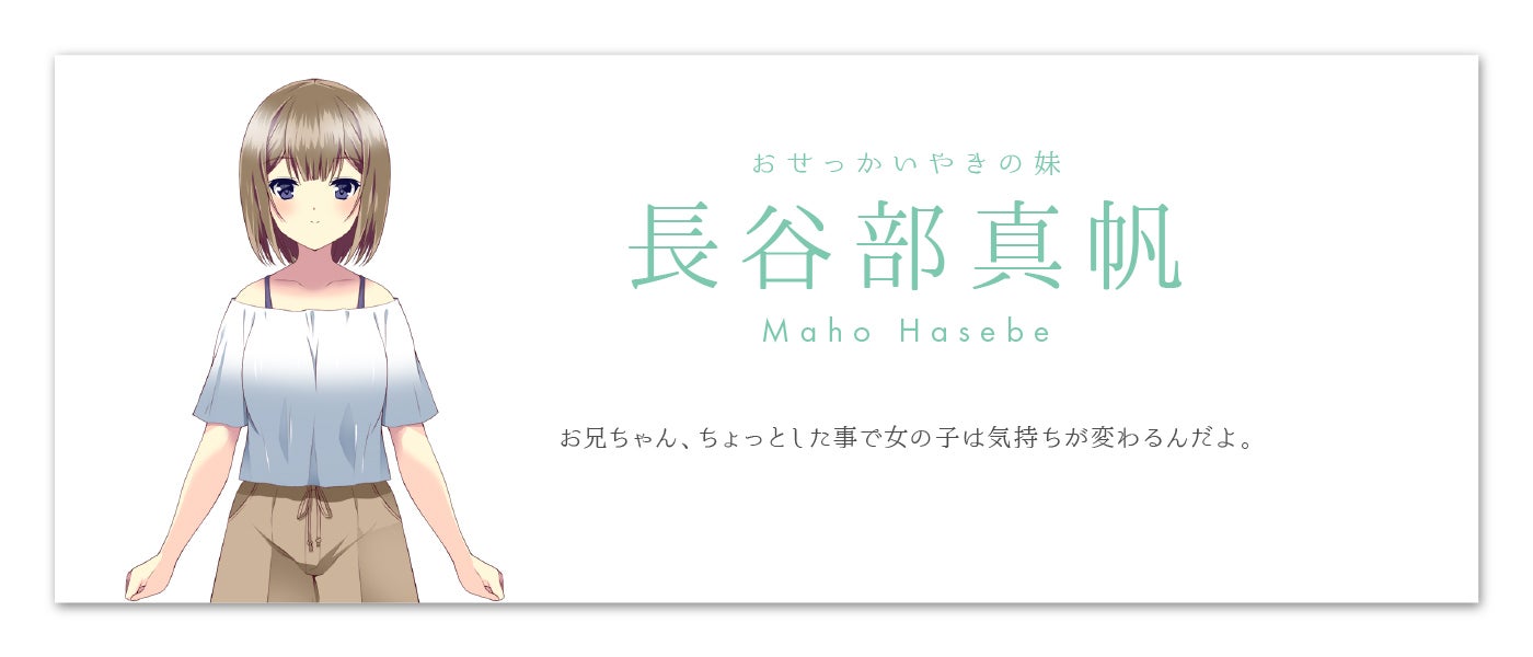 主人公の妹。邪険にしながら兄の事が実は大好きで、リビングで会えば絡んでくる。自作PCを組んだり、釣りが趣味だったりする。