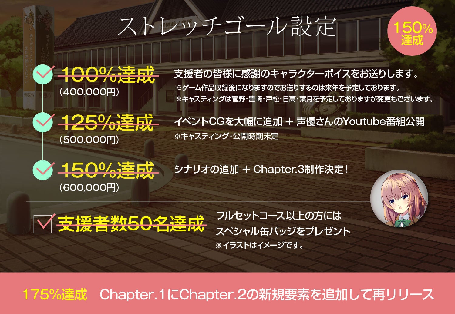 ストレッチゴール 支援者50%達成でスペシャル缶バッジを追加