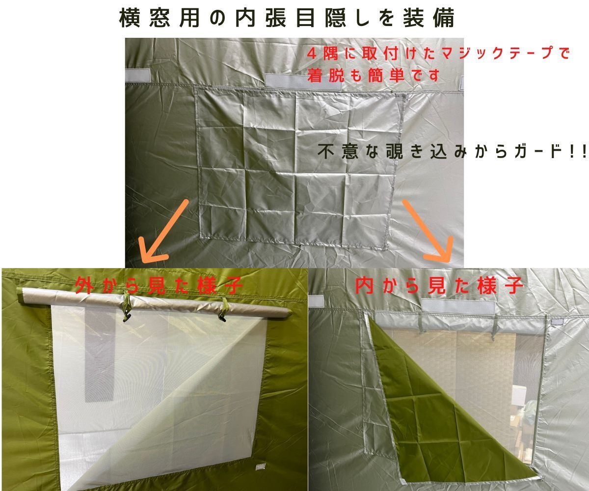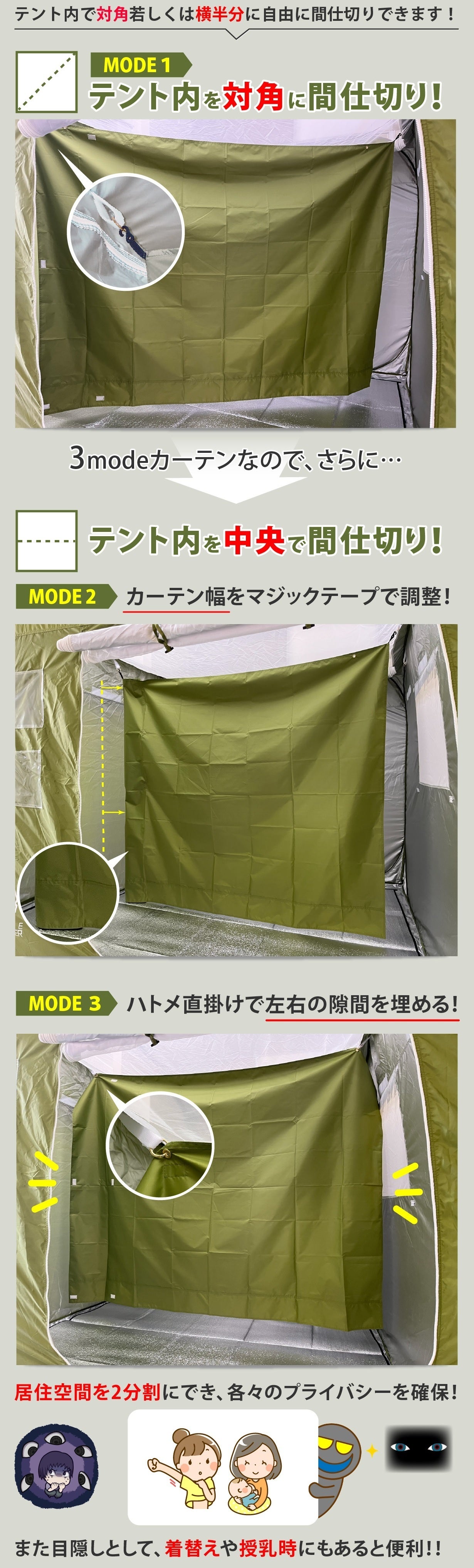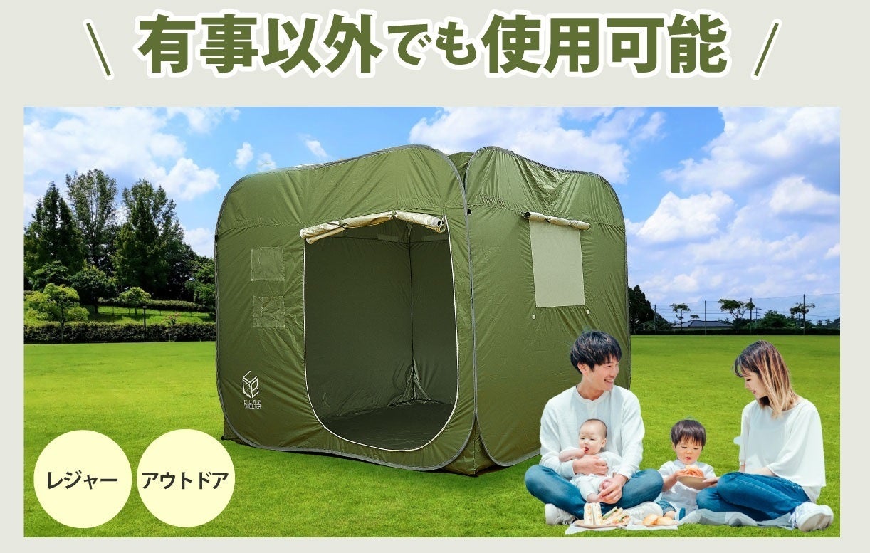 また、高さは180㎝とあえて日本人男性の平均身長以上に設計することにより、容易に上から覗けず、かつテント内での圧迫感の軽減効果も期待されます。