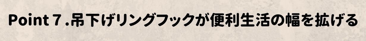 テント内部壁際に天井から吊るされたリングフックを10ヵ所取り付けました。