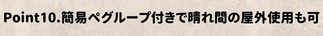 テント側面・下端に、ロープを掛けたりペグで固定する際のために簡易ループを設けてありますので、晴れた日であれば屋外レジャーにもお使いいただけます。(※雨天や強風下でのご使用はお控えください)