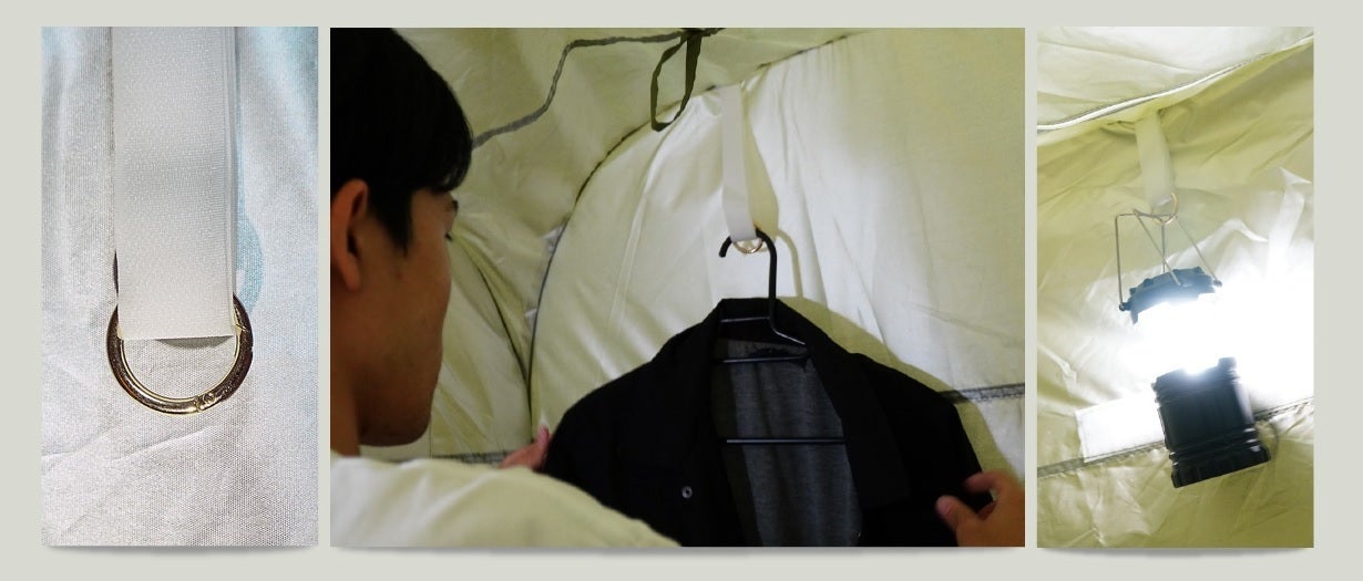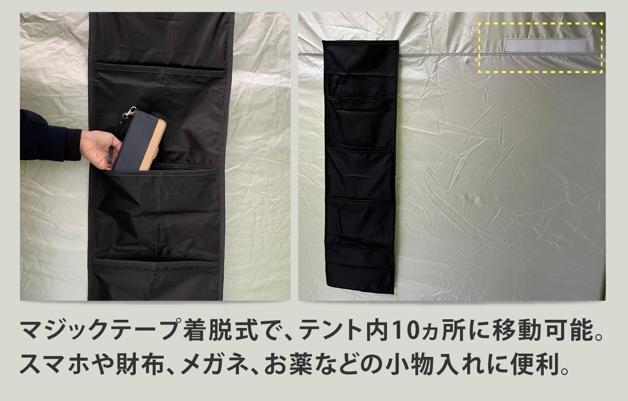 マジックテープ着脱式でテント内10ヵ所において着脱移動が可能です。
