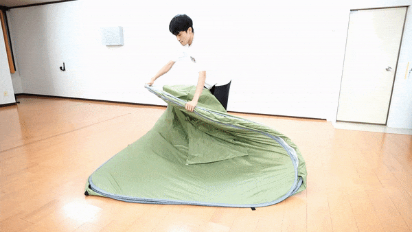 ※上記手順5⃣の【頂点を内側へ丸め込む】動作が折りたたみの一番のポイントです。コツさえつかめば、素早く収納が行えるようになります。