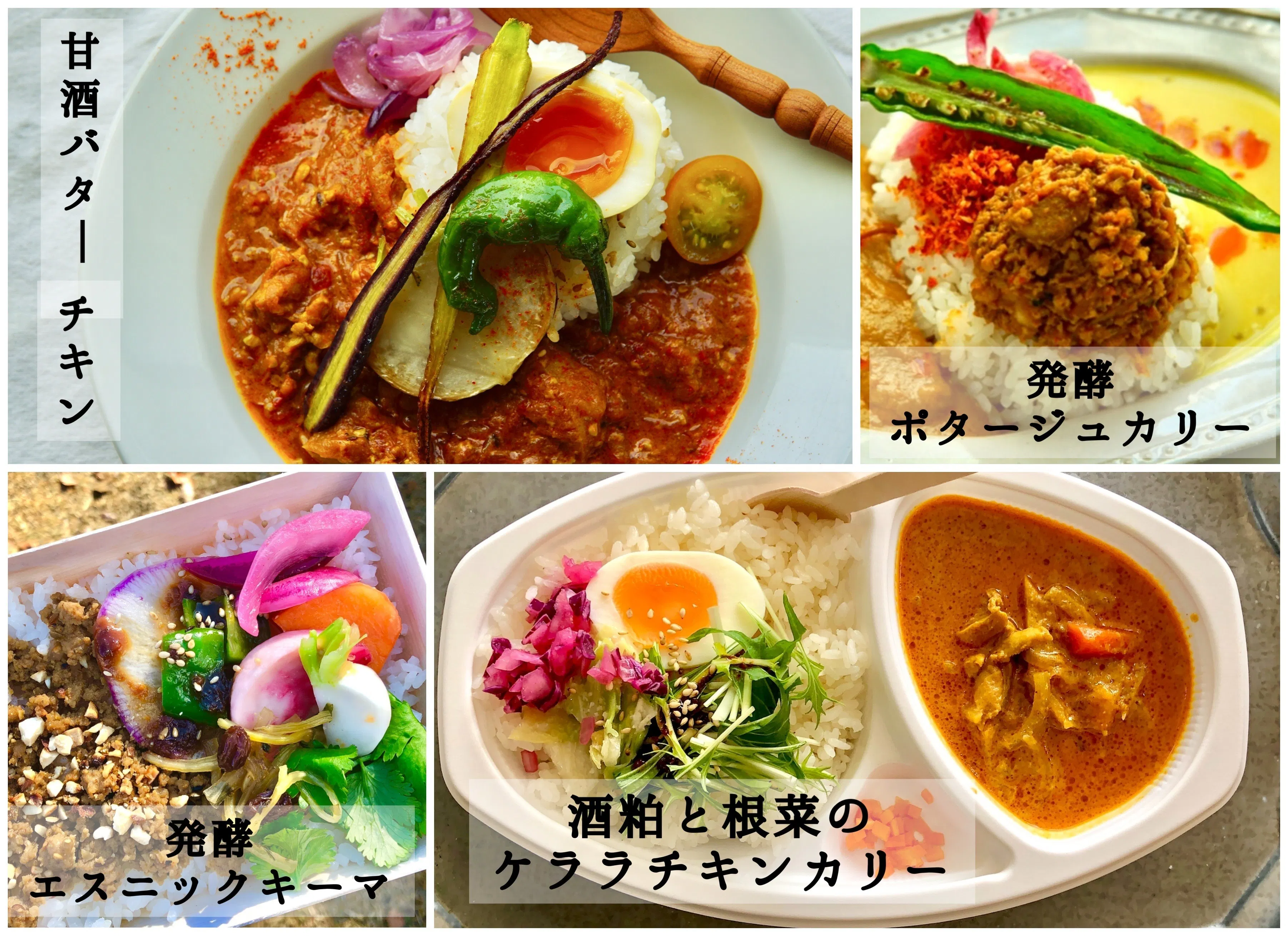 Tsumugiのカレーは発酵調味料や発酵食品とスパイスを組み合わせたグルテンフリーの創作スパイスカリーです。発酵調味料は出来るだけ手作りし『発酵』が織り成す『旨み』とスパイスの調合により日本人に合った一皿です。