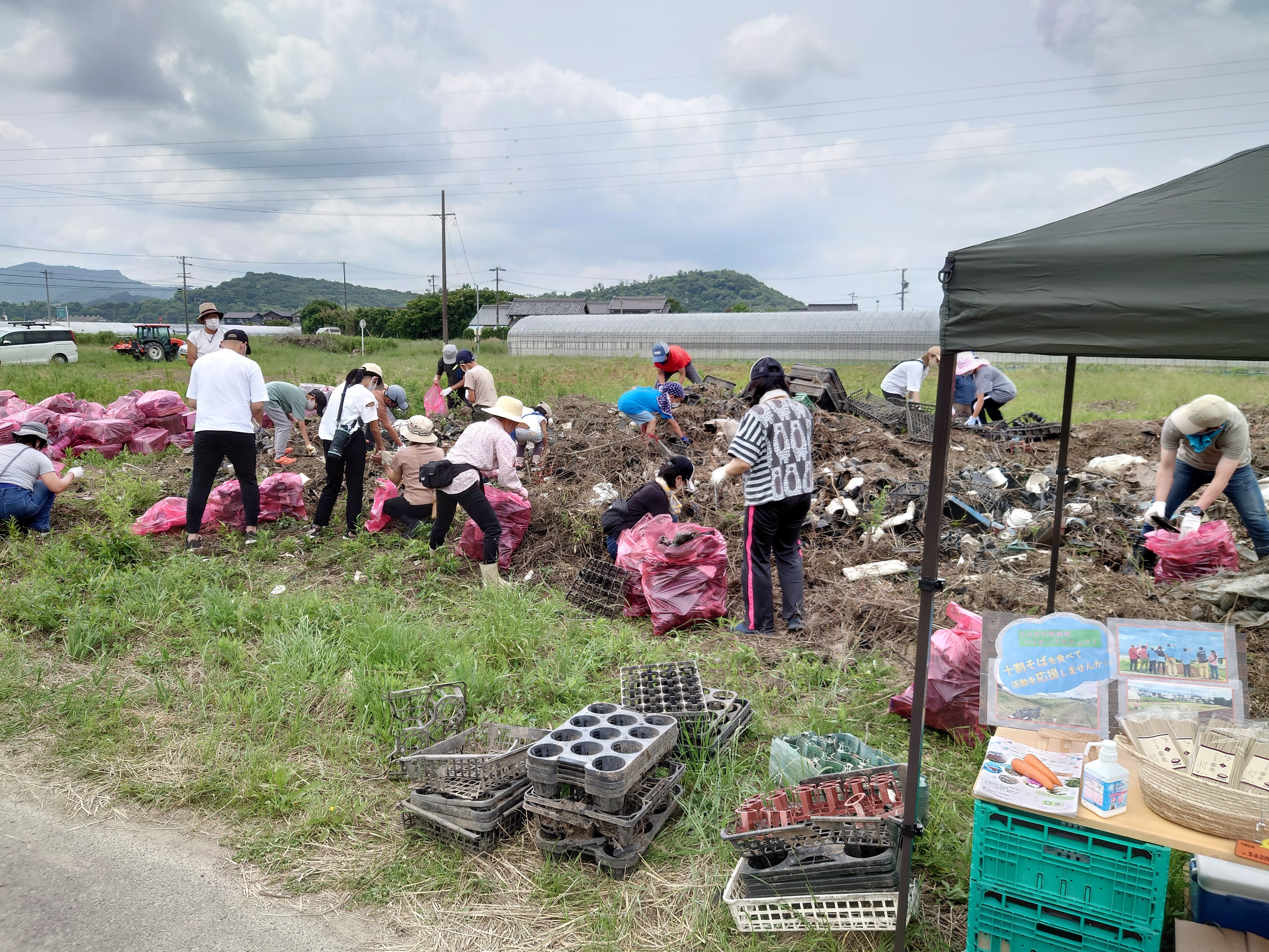 ゴミを拾い集めるだけでも半年以上経過。その間、根気強く作業を進めてくれたのはあおば農園のスタッフとボランティアの方々。昨年6月にあった農業イベント「オープンファーム」では子どもたちも手伝ってくれました。